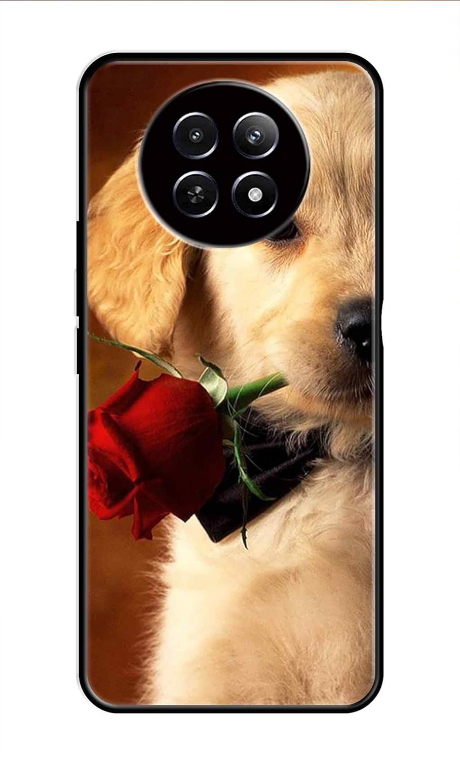 Metal TPU Printed Back Cover for Realme Narzo N65 5G (Cute Dog with Rose) 360 Degree Protection | Camera Protection -25092024(AS)
