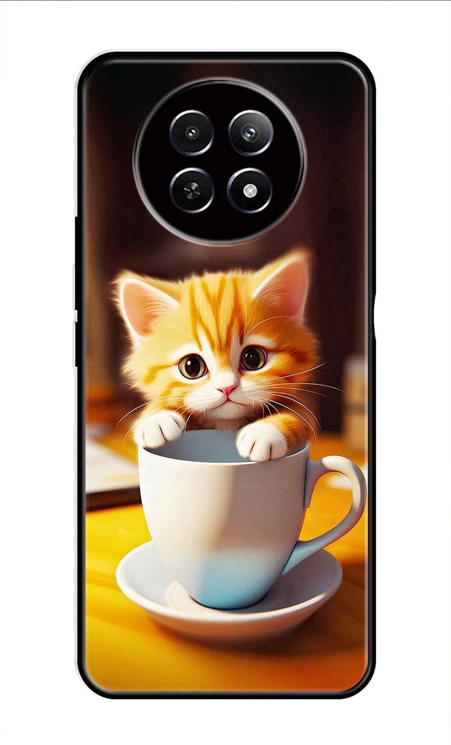 Metal TPU Printed Back Cover for Realme Narzo N65 5G (Cute Small Cat with Cup) 360 Degree Protection | Camera Protection -25092024(an)
