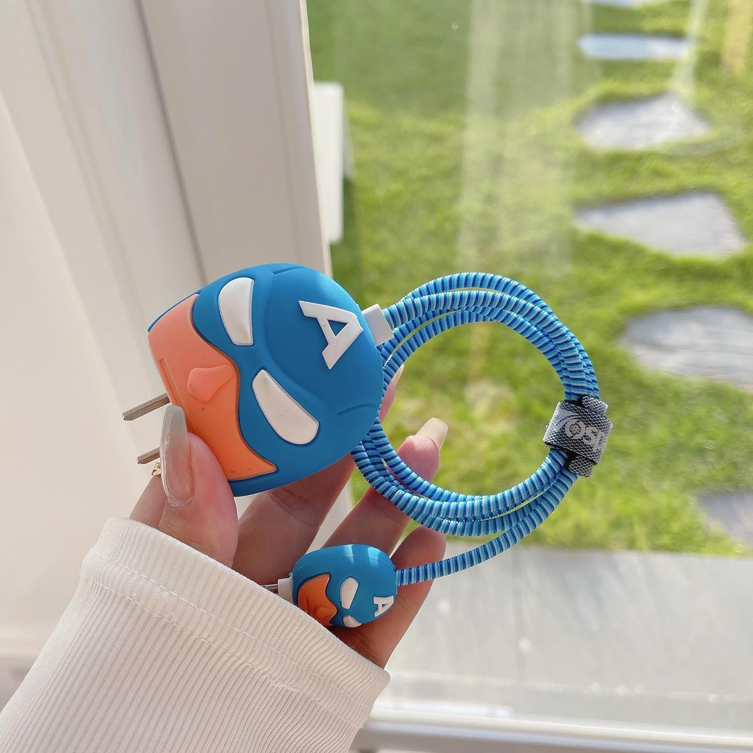 Meyaar 4 in 1 Silicone Case for Apple 20W USB-C Power Adapter Protective Cover for Apple iPhone Charger 20W/18W Adapter with Spiral Wire Saver (Charger Not Included) (Blue (Captain-America))
