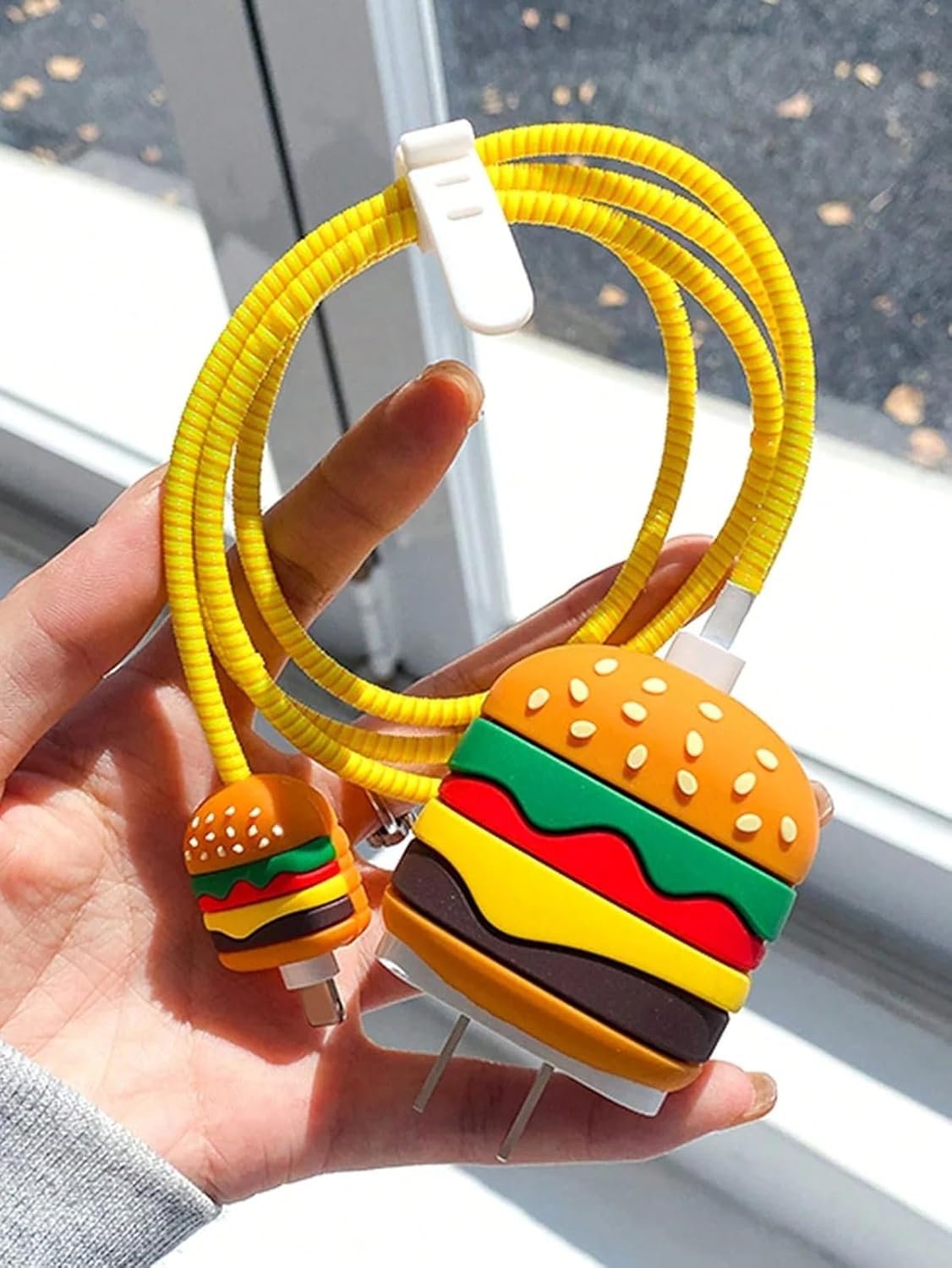 Meyaar Silicone Protective Case for Apple 20W & 18W iPhone USB-C Power Adapter Charger and for USB Lightning Cable, 3D Cartoon Case for iPhone Charger 18W/20W Only (Burger)