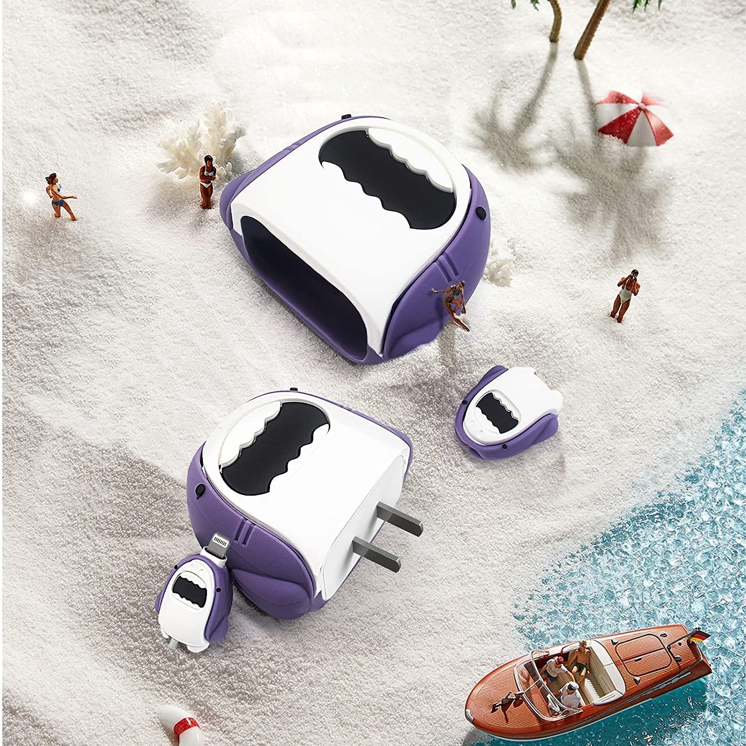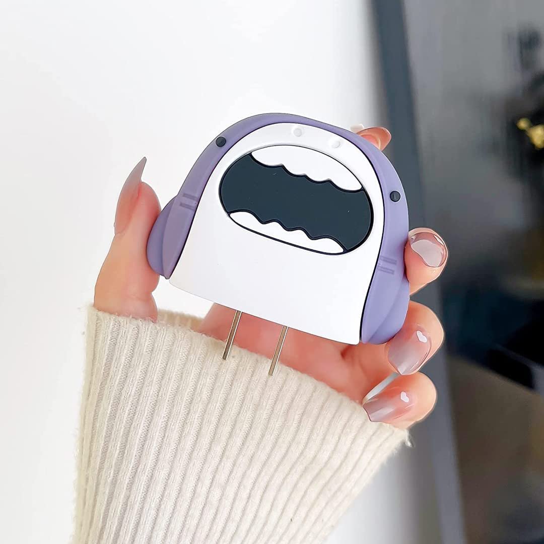Meyaar Silicone Protective Case for Apple 20W & 18W iPhone USB-C Power Adapter Charger and for USB Lightning Cable, 3D Cartoon Case for iPhone Charger 18W/20W Only (shark (Grey))