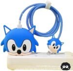 Meyaar Silicone Protective Case for Apple 20W & 18W iPhone USB-C Power Adapter Charger and for USB Lightning Cable, 3D Cartoon Case for iPhone Charger 18W/20W Only (Son.ic (Blue))