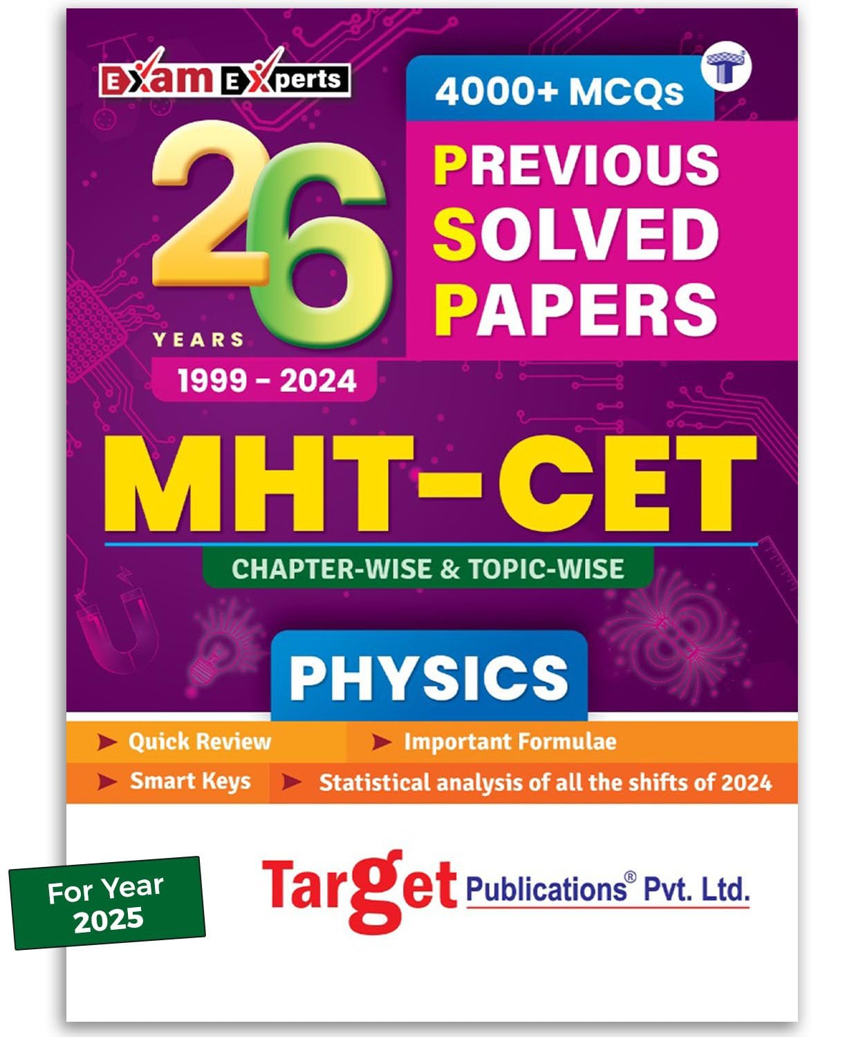 MHT CET Physics Previous 26 Years Questions Papers for 2025 Exam | MHCET Solved Papers 1999 to 2024 | MHT-CET PSP Chapterwise & Topicwise 4000+ MCQs | Includes Study Techniques