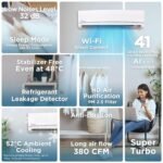 Key Features: Gear Control Inverter Compressor; Convertible 4-in-1 cooling; Dual Filtration with HD & PM 2.5 Filter; Smart Wi-Fi AC with Google & Alexa Enabled; Turbo Mode for Faster Cooling; Hydro Blue Coating for Long Lasting Comfort; Refrigerant Leakage Detector; Auto Cleanser; ADC Sensor