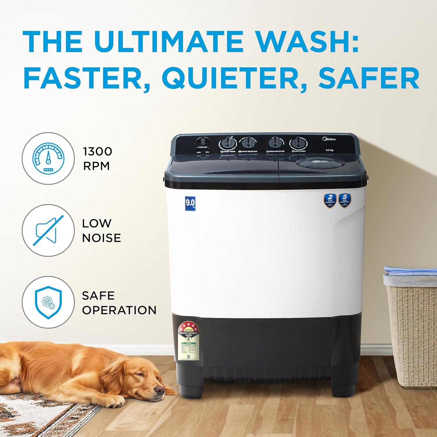 3. 5-Star Energy Rating with Low Power Use: Certified with a 5-star Energy Rating and running on just 150 watts, this model ensures energy-efficient performance without compromising wash quality. It’s a great choice for eco-conscious users.
