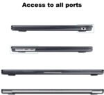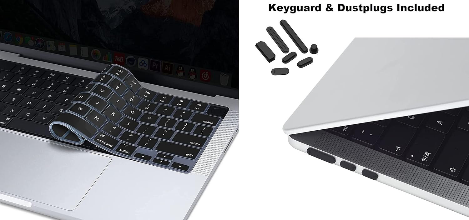 Accessibility and Heat Dissipation: The case is made of hard plastic which is designed in such a manner that lets you access all the features and fully vented for safe heat disbursement without removing the case. The case comes with a soft and washable slim keyboard cover which protects the keyboard area against accidental liquid spills, dust, dirt, hair etc. One can easily cover all the ports to avoid accumulation of dust with the dust plugs given