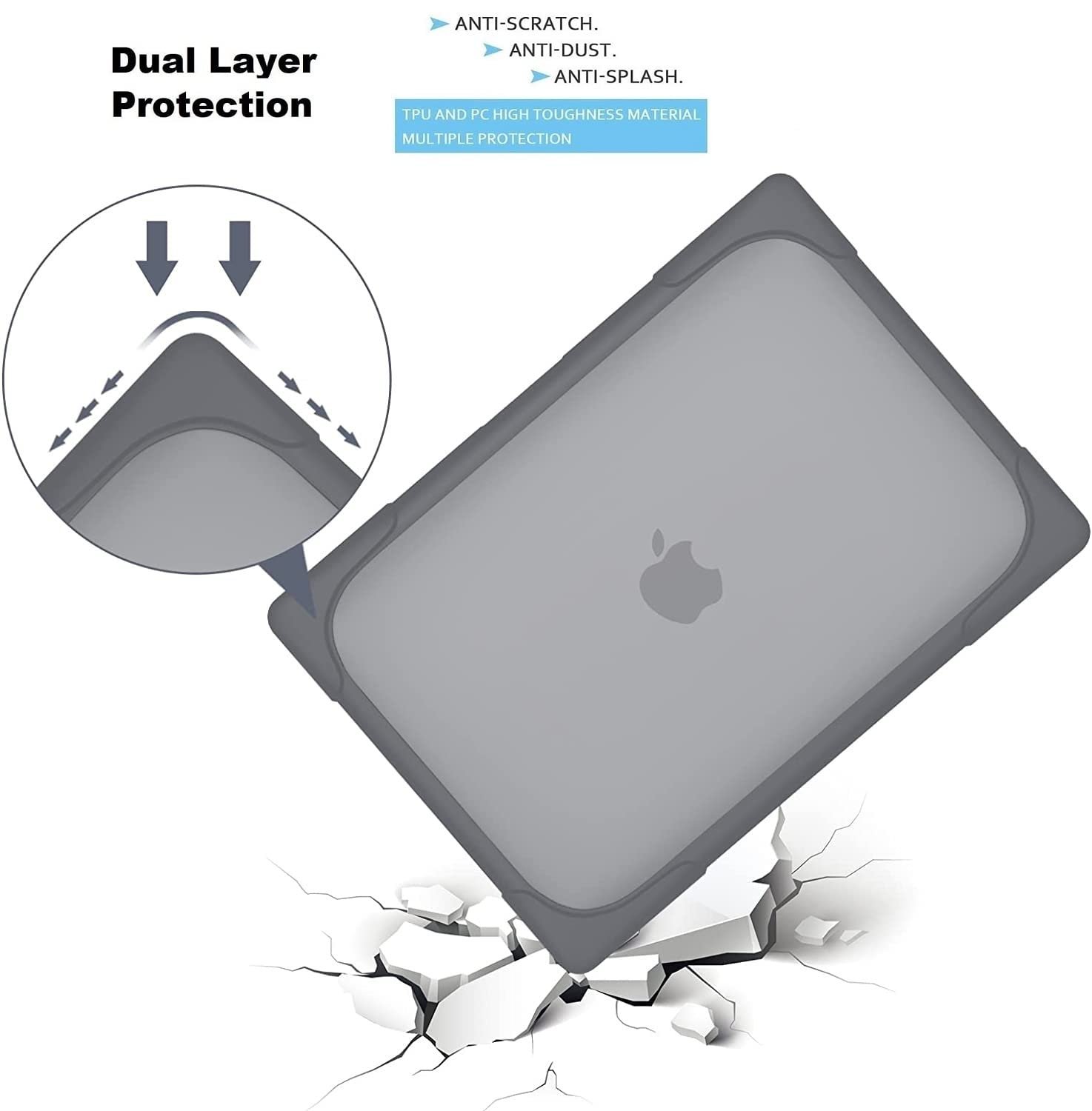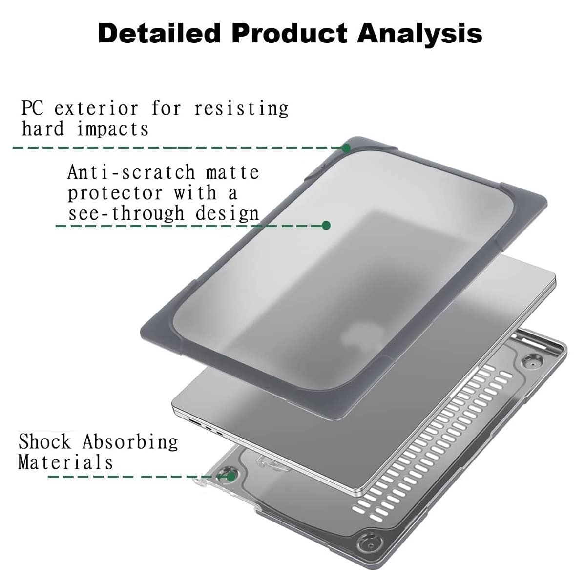 Semi-Translucent: No cut out design but with its translucent feature, the case allows the logo to shine through it. there are even four anti-slip raised feet on the bottom shell to keep your MacBook stand firmly in place