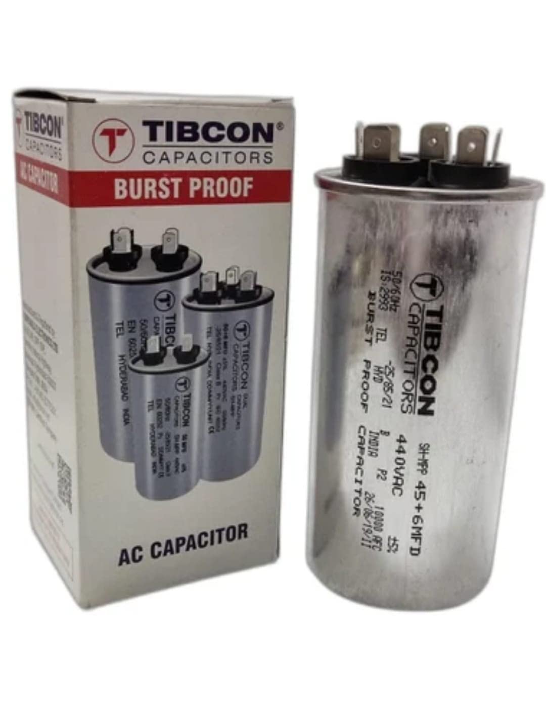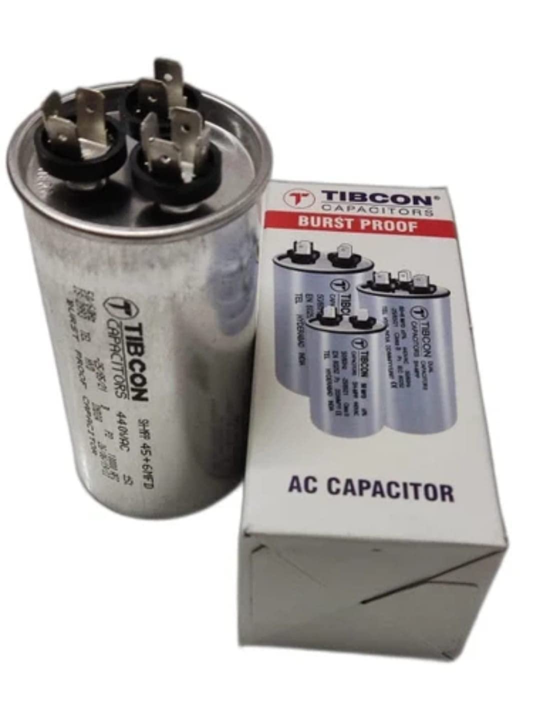 Mickko 45+6 MFD “Tibcon Capacitor 440V for ( 1.5 Ton ) Air conditioner Multiple usage in a range of appliances, viz. Air – Conditioners, Washing Machines where two motors operate either single or separately. ” ( 1 Year Replacement Warranty )