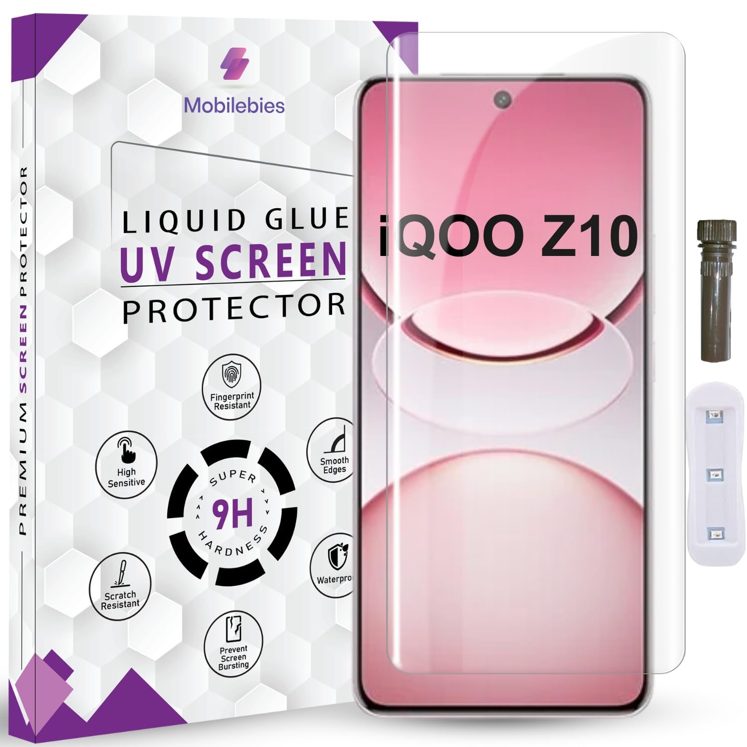 Mobilebies® Advanced HD+ UV Tempered Glass Screen Protector For iQOO Z10 5G (6.77 Inch, Pack of 1) Full Adhesive UV Curved Screen Guard, Case Friendly with installation kit & Guide