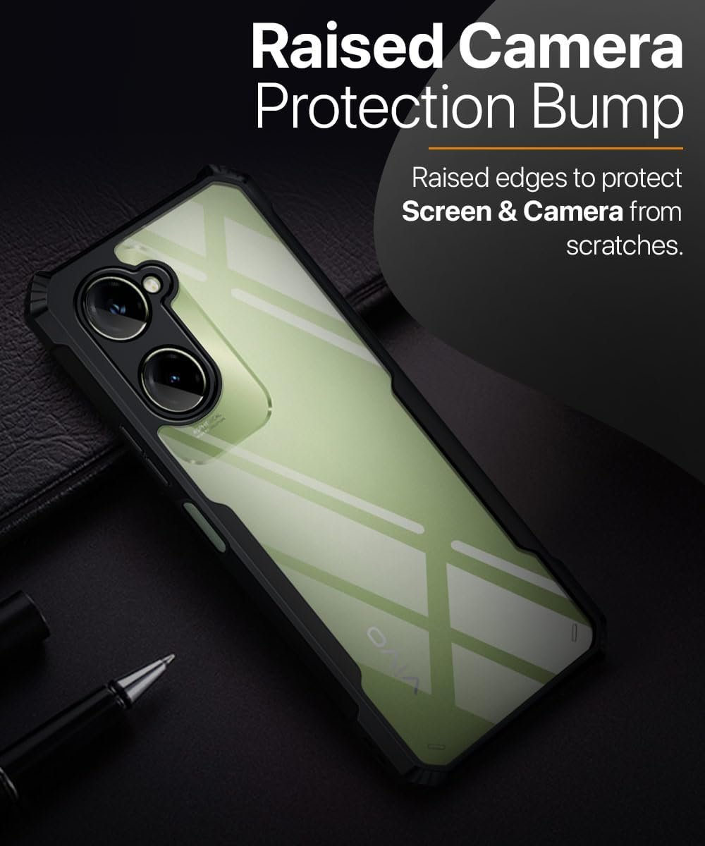 MOBILOVE Shockproof Crystal Clear Back Cover Case for iQOO Z9 Lite | Vivo T3 Lite 5G | Y18 | Y18e | Y03 | 360 Degree Protection | Hybrid Soft PC Anti Clear Gel TPU Bumper Case (Black)