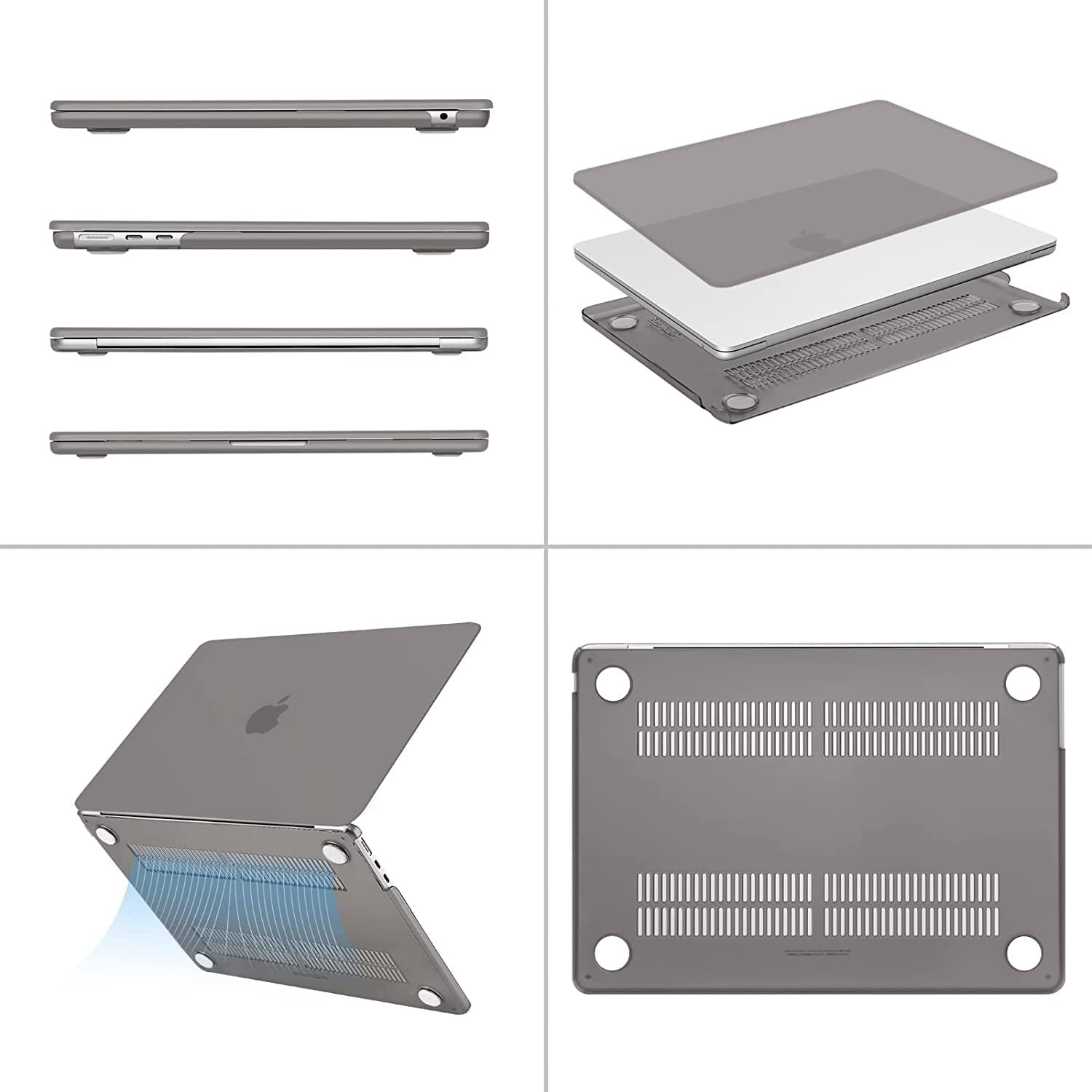 MOCA Case for New MacBook Air 13.6-inch (M4 A3240, M3 A3113, M2 A2681) with Touch ID, 2025 2024 2022 Release – M2 M3 M4 Air 13 Laptop Protective Plastic Hard Cover (Grey)