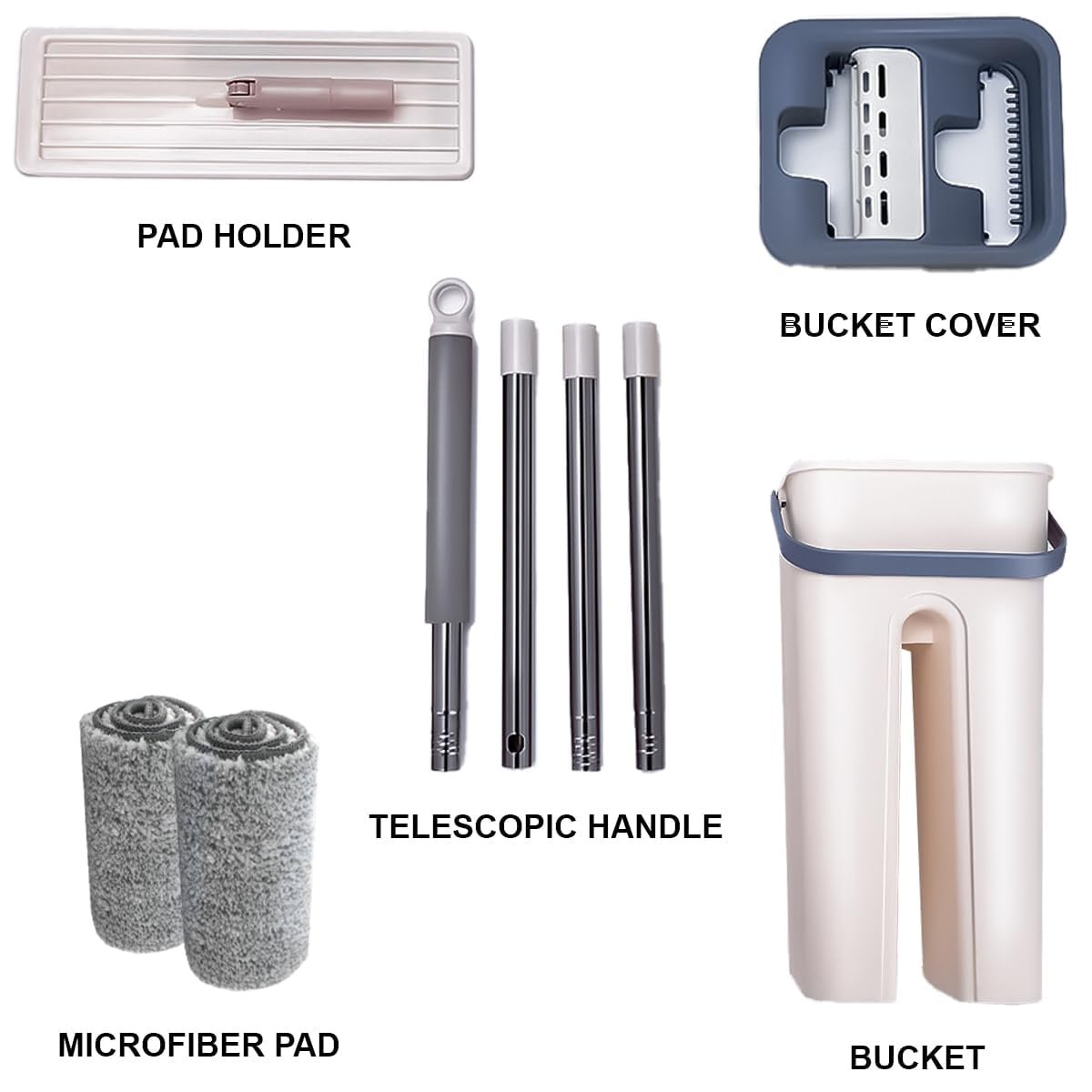 Mop with Bucket for Floor Cleaning|Flat Mop with Telescopic Stick for Cleaning Floor|Wet & Dry Cleaning Operation with Self Clean System|Equipped with 2 Microfiber Pad