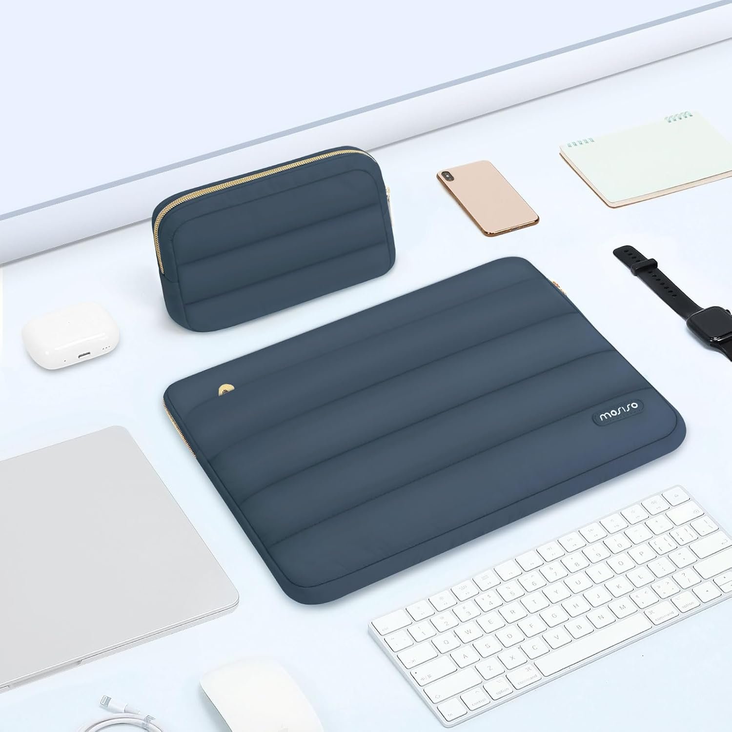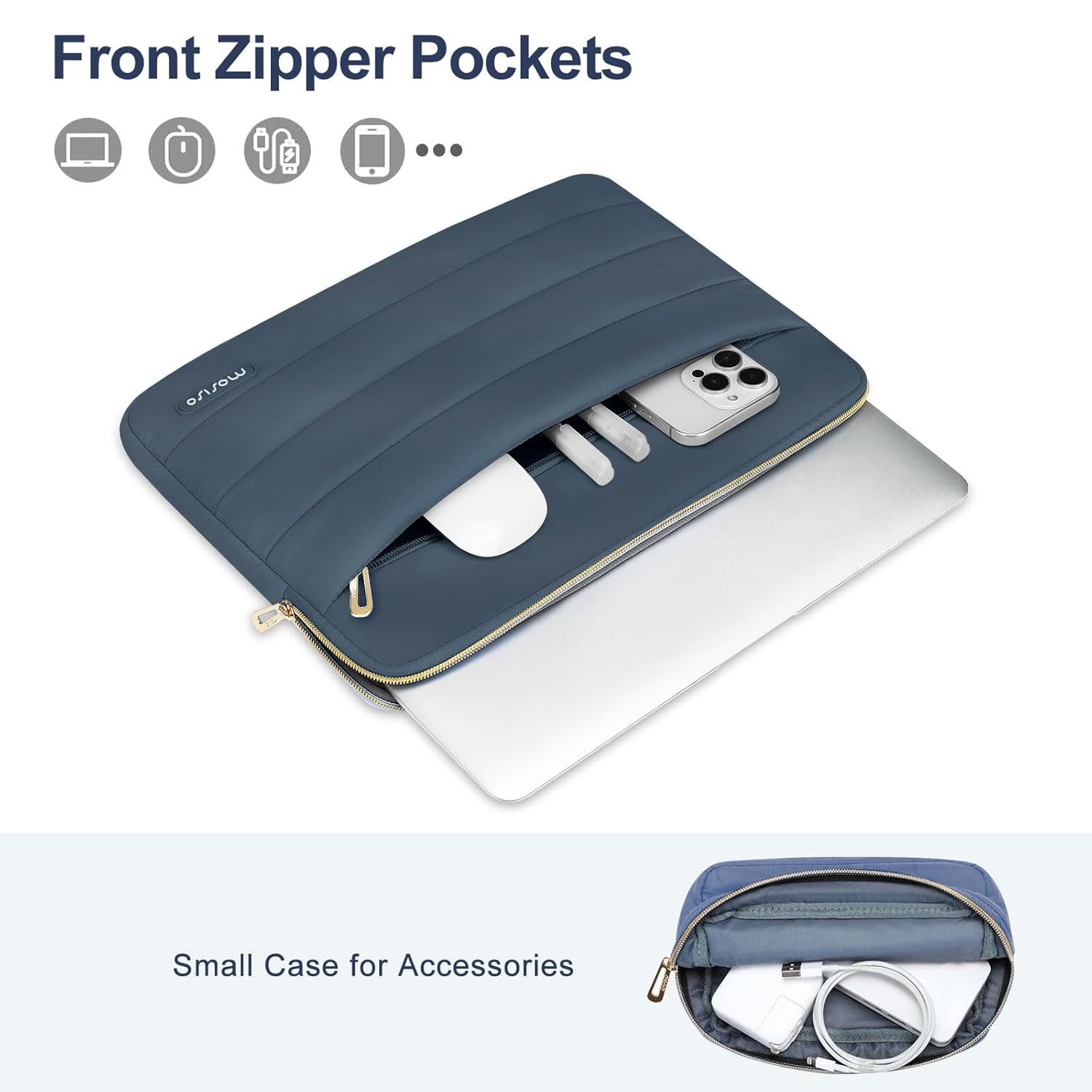 MOSISO 13-14 inch Laptop Case, 13.3 inch Puffy Laptop Sleeve Compatible with MacBook Air 13 13.6 M3 M2 M1/Pro 13/Pro 14, HP, Dell, ASUS, Lenovo, Polyester Horizontal Bag with Small Case, Haze Blue