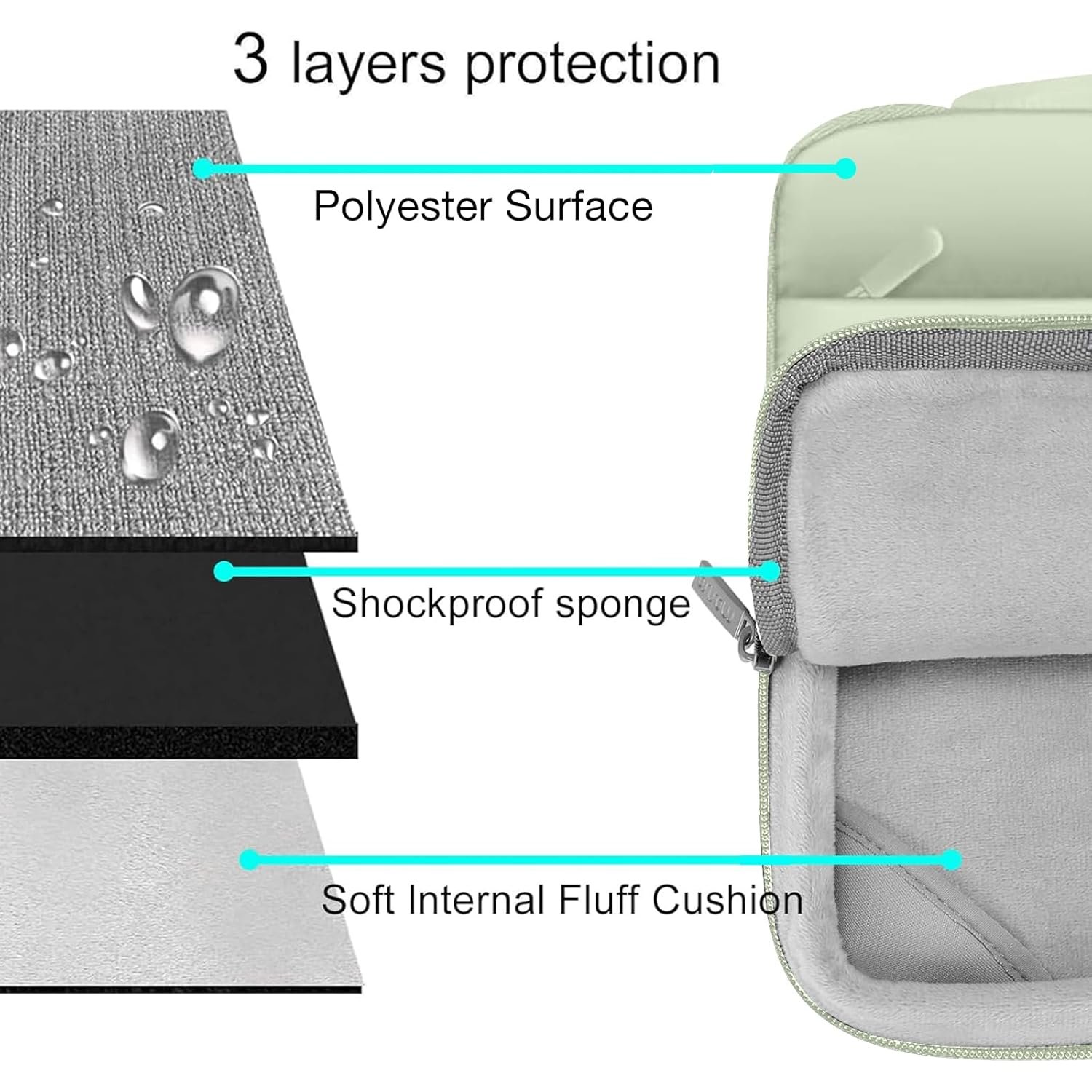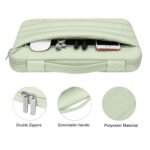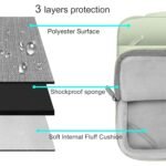 The 360 degree protective shockproof puffy laptop sleeve carrying bag internal dimension: 12.6 x 0.79 x 8.66 inches (L x W x H); external dimension: 13.19 x 0.79 x 9.25 inches (L x W x H). The front pocket dimension: 10.8 x 6.5 inches (L x W). Made of soft touch puffy polyester material, protect your laptop against accidental spills. Slim and lightweight, does not bulk your device up and can easily slide into your briefcase, backpack or other bag. Ideal for business, daily and travel.