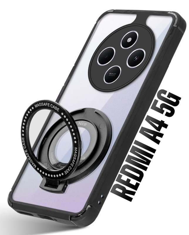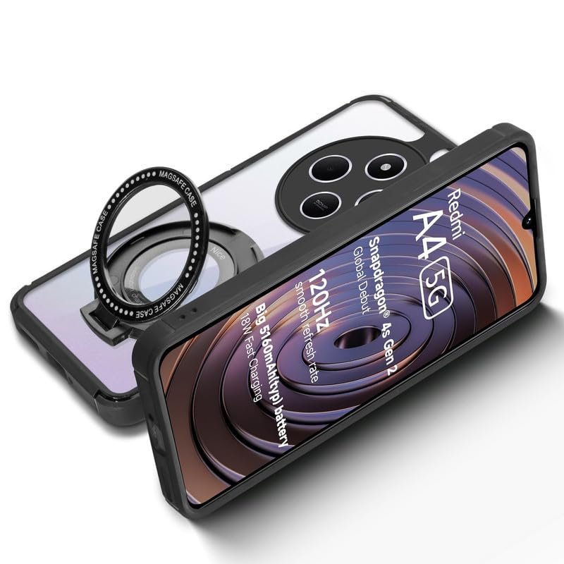 Mr. Case Silicon Framed Transparent Back Cover for Redmi A4 5G with Holder Kickstand Function | Anti-Yellow, Shockproof, Scratch-Resistant – Black