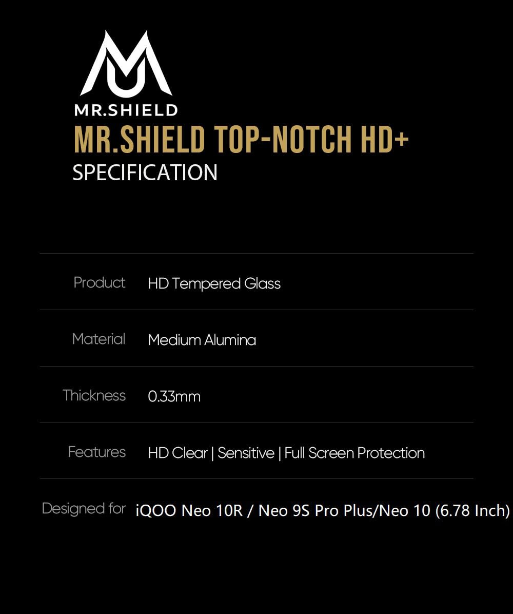 Mr.Shield Top-Notch HD+ Tempered Glass Screen Protector Guard for iQOO Neo 10R / Neo 9S Pro Plus / Neo 10 (6.78 Inch), 9H Hardness, Military Grade Protection, Easy Installation kit