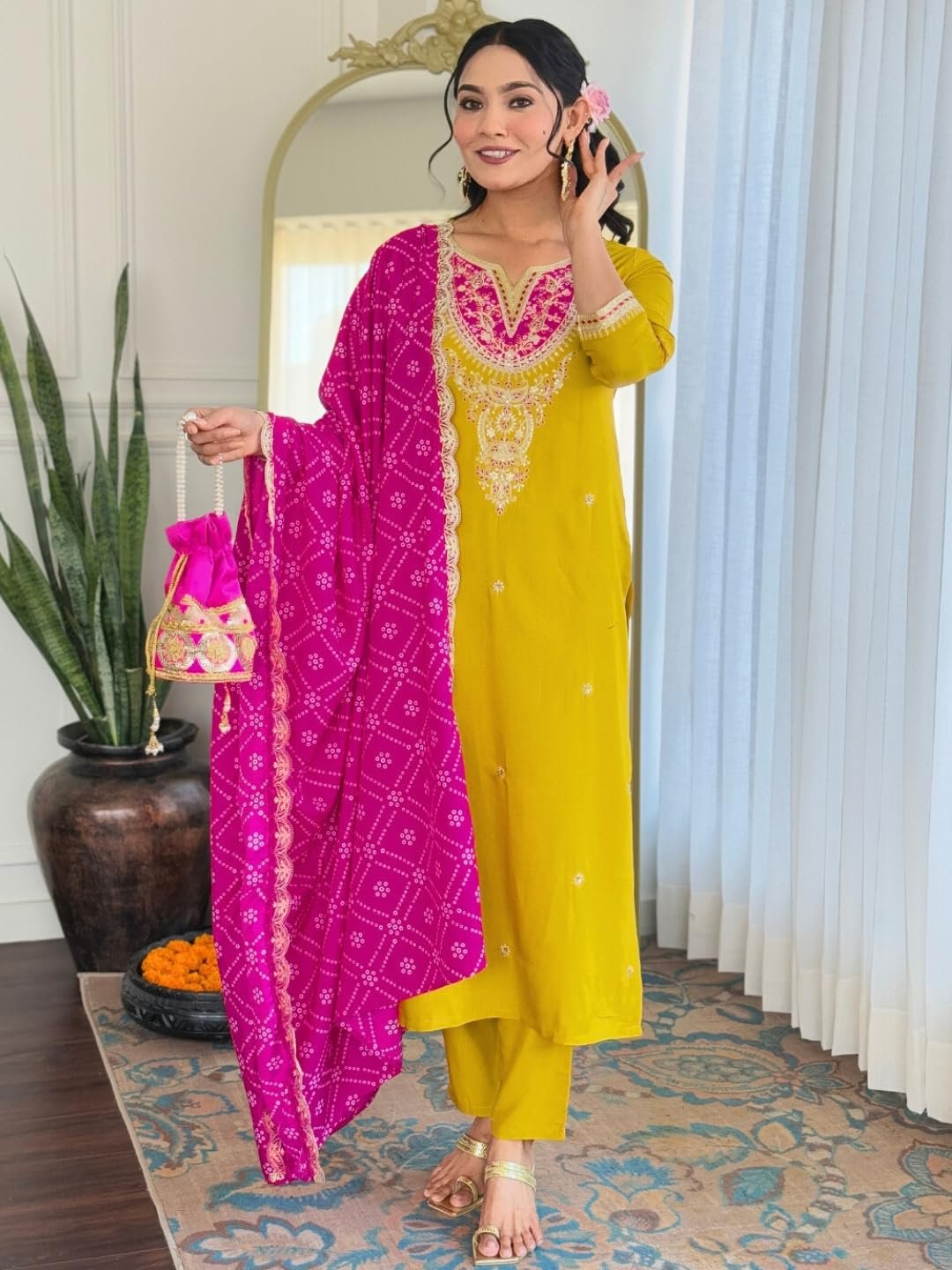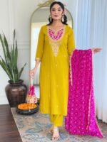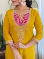 This set includes a straight-cut kurta with elegant embroidery, perfect for any occasion.