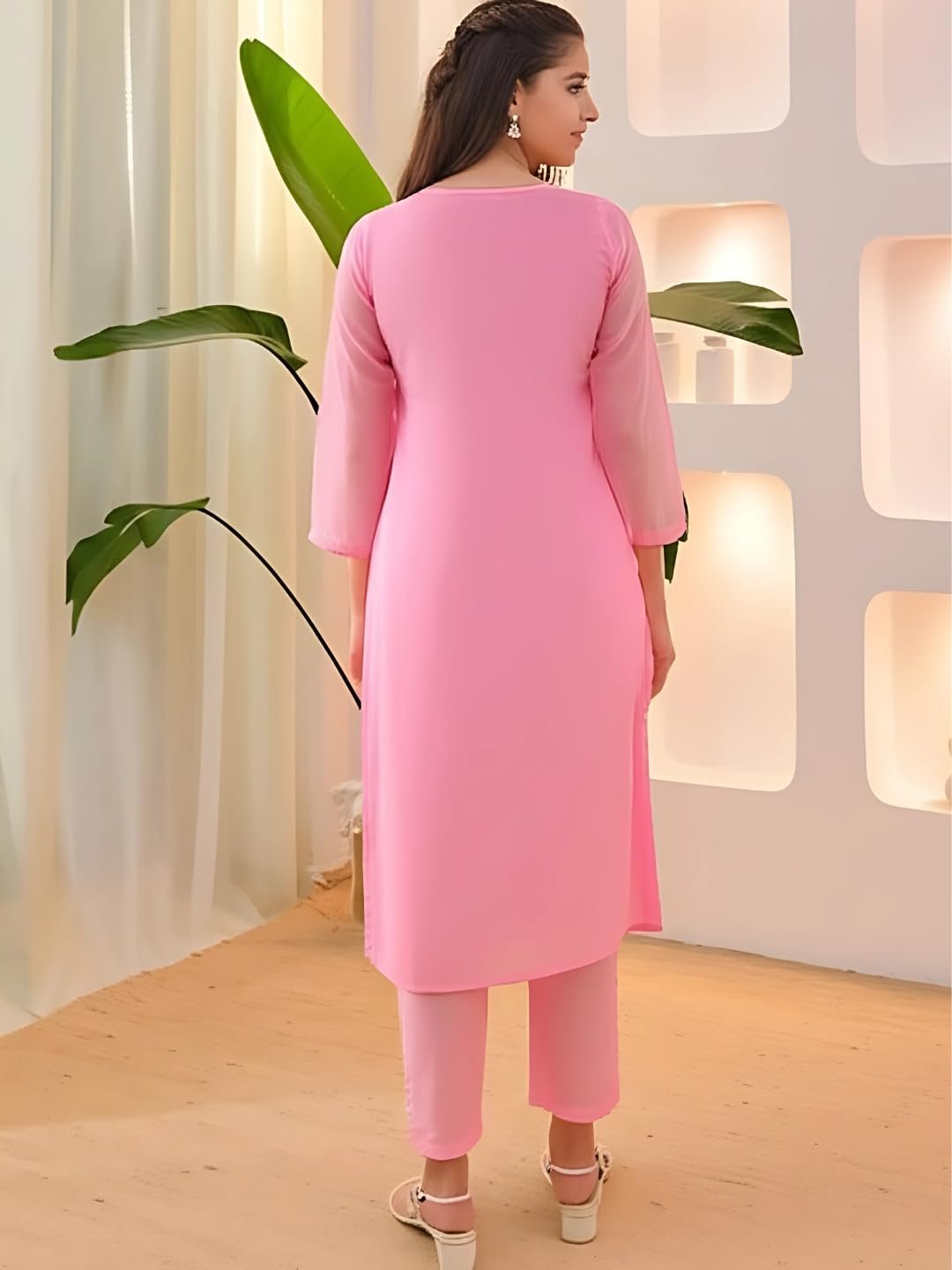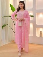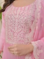 Step into timeless elegance with this Women’s Silk Blend Lakhnavi Embroidered Kurta Set, featuring a Silk Blend kurta and pant paired with a finely crafted Chanderi embroidered dupatta. The kurta is adorned with intricate Lakhnavi embroidery, giving it a rich and traditional appeal, while the dupatta adds sophistication with its elegant embroidered finish. Designed in premium-quality fabric, this set is lightweight, comfortable, and perfect for festive occasions, weddings, or special gatherings. The package includes 1 Kurta, 1 Pant, and 1 Dupatta. For the best fit, please check our size guide, and if you are between sizes, we recommend choosing the next larger size. To preserve the beauty and embroidery of the fabric, Hand Wash Only is recommended.