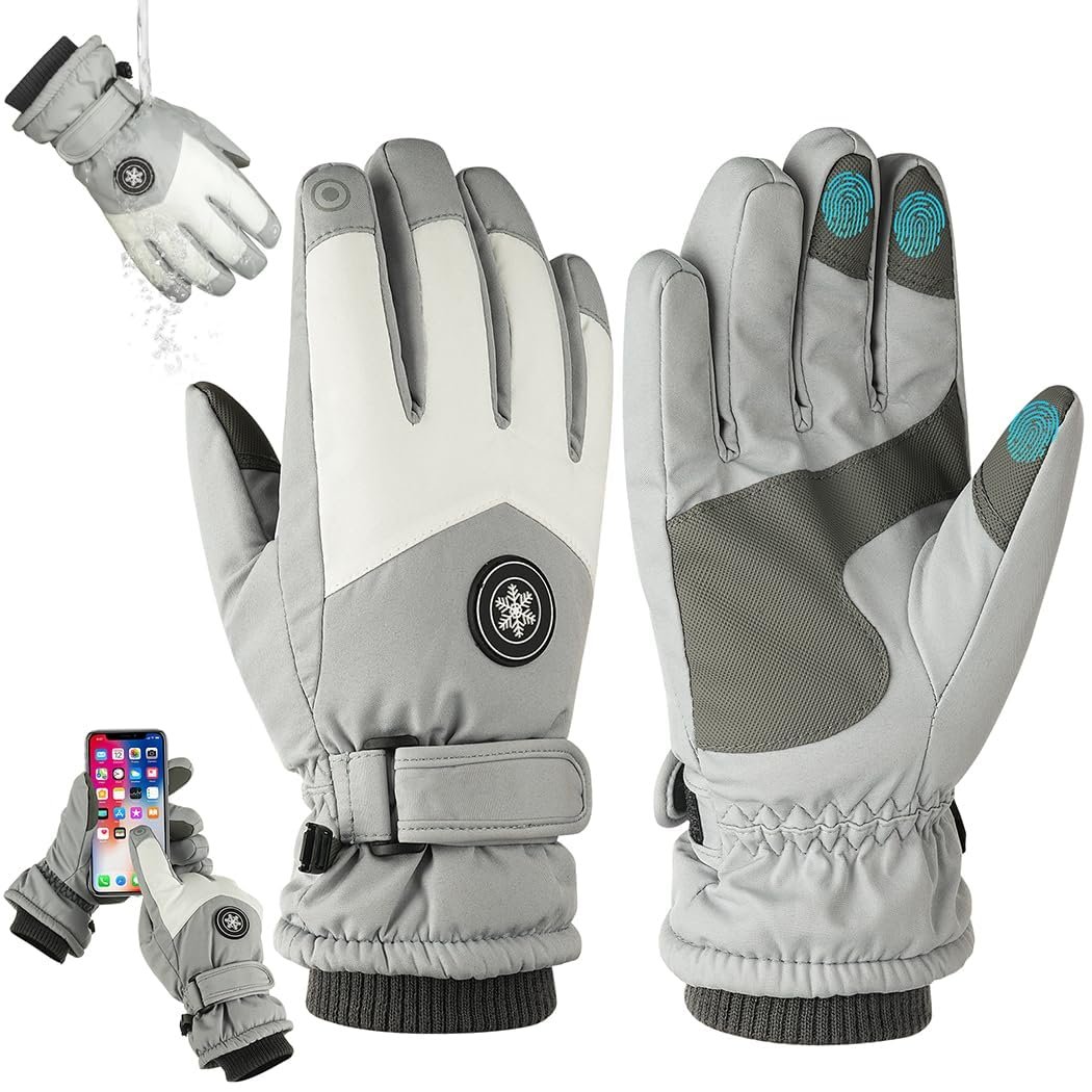NAWOKEENY Ski Gloves for Men Women, Winter Warm Gloves, Windproof Touch Screen Gloves with Cushioned Palms, Suitable for Cycling, Running, Climbing, Hiking Outdoor Sports (Grey)