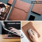 3 in 1 Function – Laptop Stand,Laptop sleeve,mouse pad 3 in 1 function. Packing include:1 Pcs 13-14 inch laptop sleeve case Brown