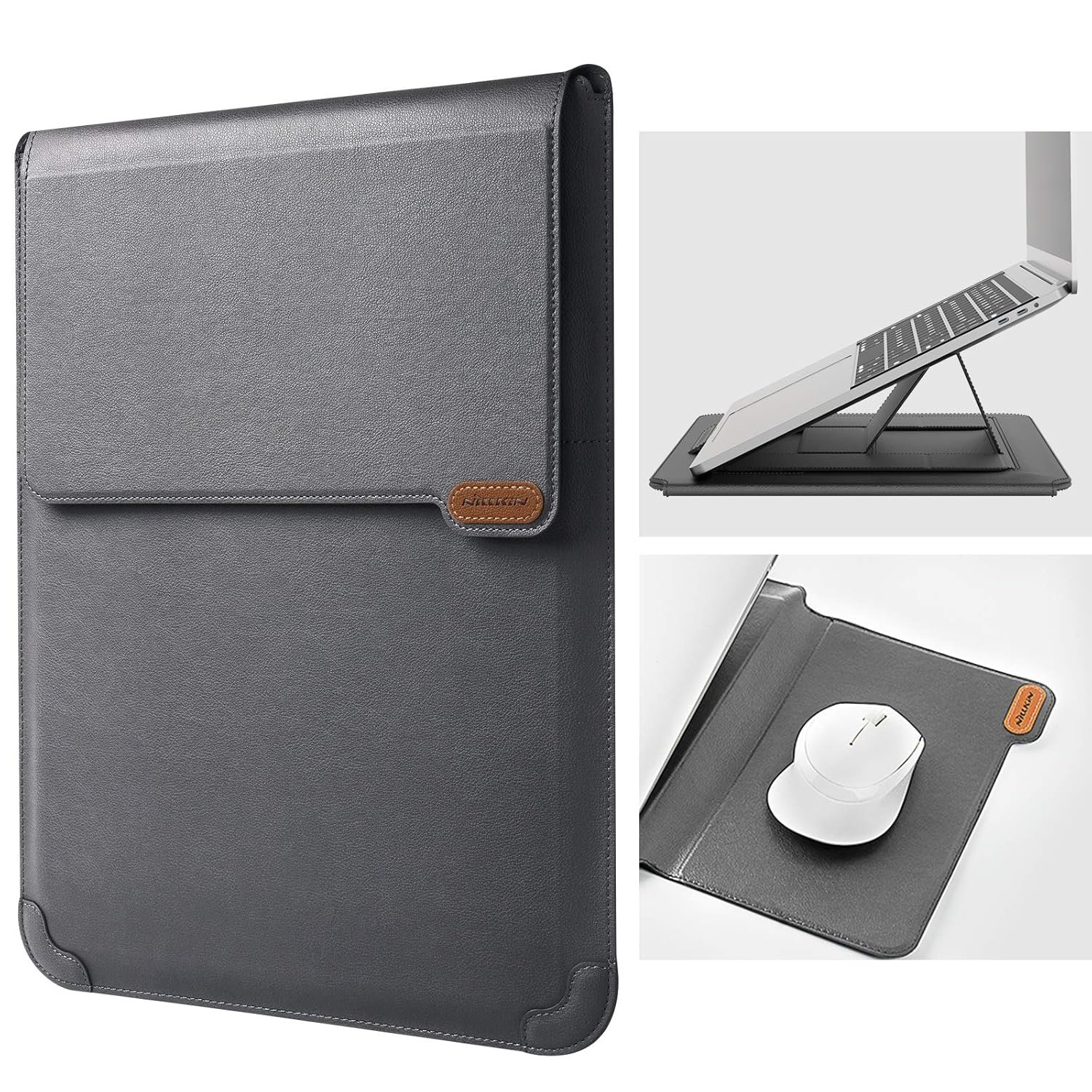 Nillkin Laptop Sleeve for MacBook Air M4(2025)/Pro 13/MacBook Air 13 inch, MacBook Air Sleeve with Laptop Stand and Mouse Pad, Case Bag for 13-14 inch MacBook, ASUS, Dell, HP, Grey