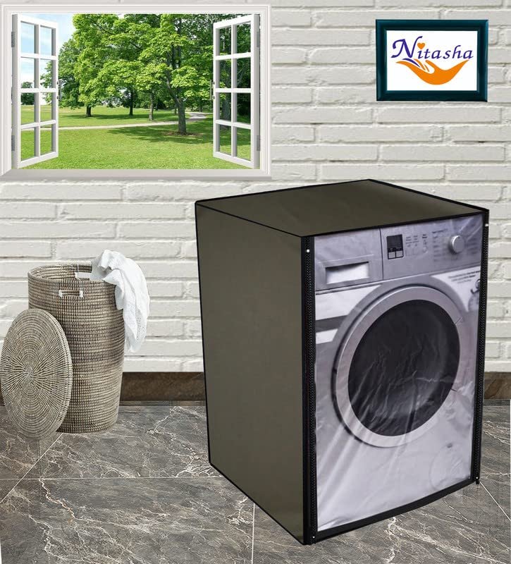 Nitasha TRANSPARENT design washing machine cover Compatible With LG 9 Kg Front Load Fully Automatic with Smart Diagnosis System, FHM1409BDP (Green Colour)