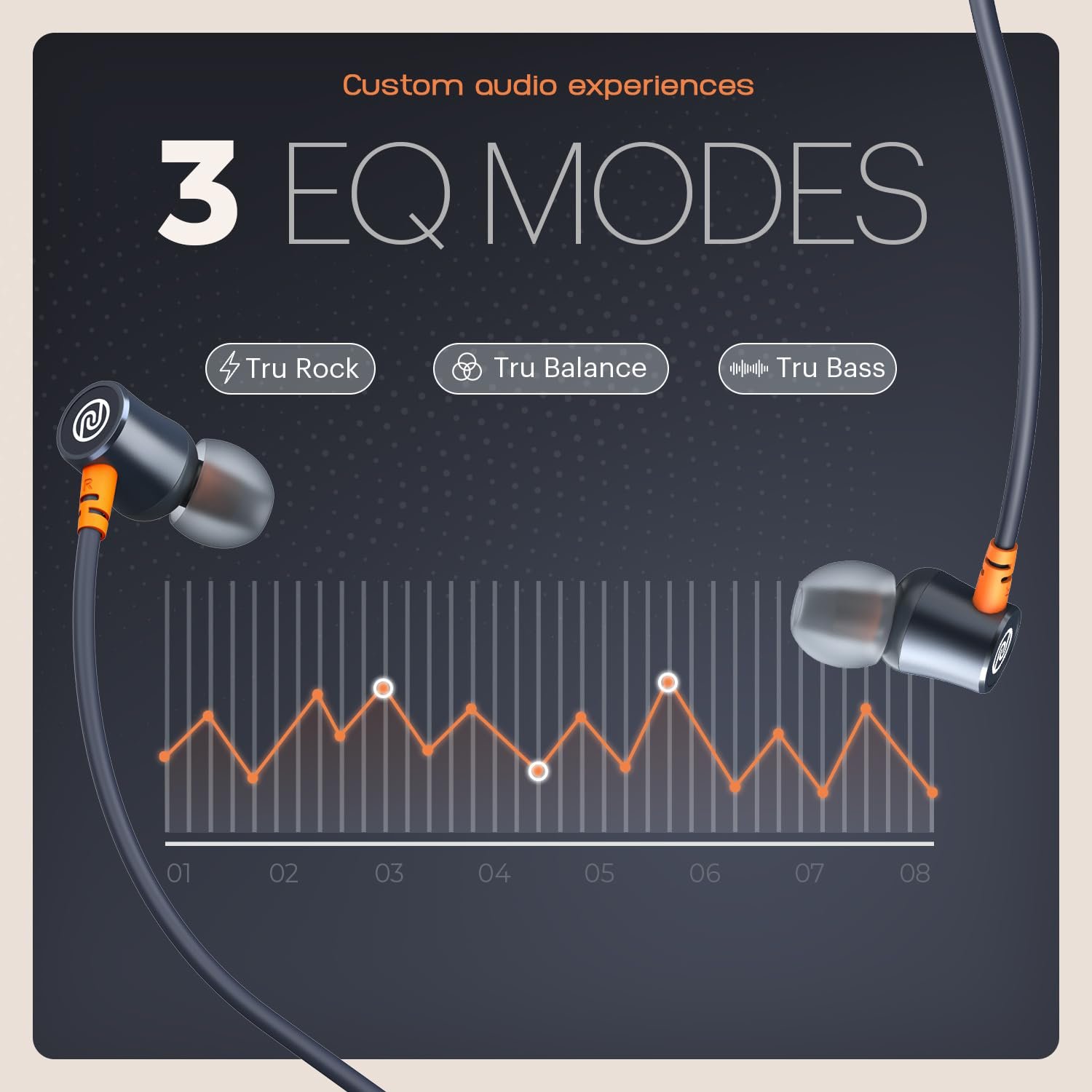 3 EQ Modes (Tru bass, Tru balance, Tru rock ):- You deserve to listen to audio the way you like best. We make that happen for you with Tru Bass, Tru Balance and Tru Rock.
