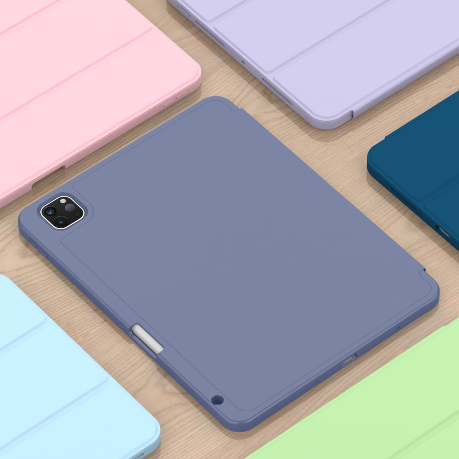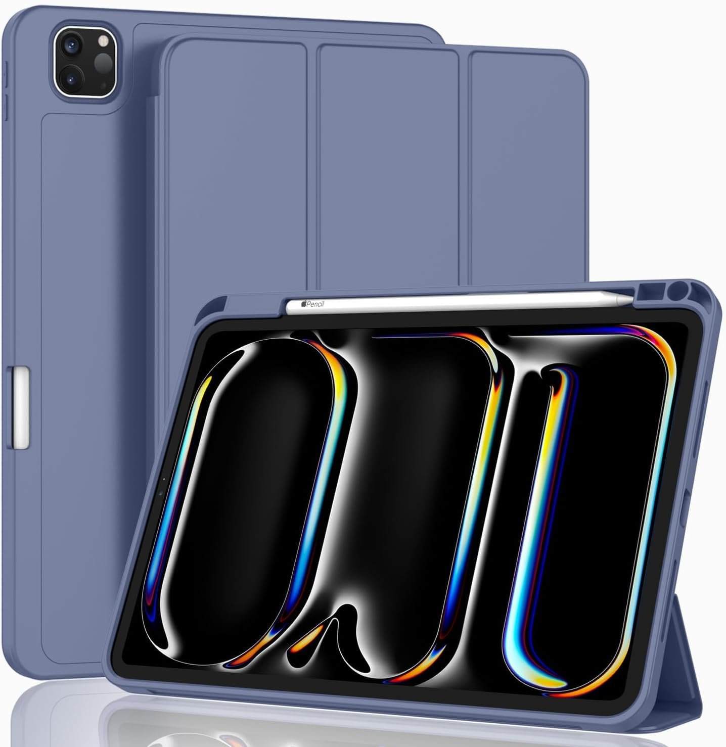 Oaky Pencil Holder Case for Apple iPad Pro 11 inch 2024 M4 5th Gen Model – A2836, A2837 Cover Slim Trifold Stand with Auto Wake/Sleep Soft TPU Back Cover – Lavender