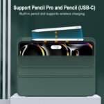 Oaky Pencil Holder Case for Apple iPad Pro 13 inch 2024 M4 [Model – A2925, A2926] Cover Slim Trifold Stand with Auto Wake/Sleep Soft TPU Back Cover – Dark Green