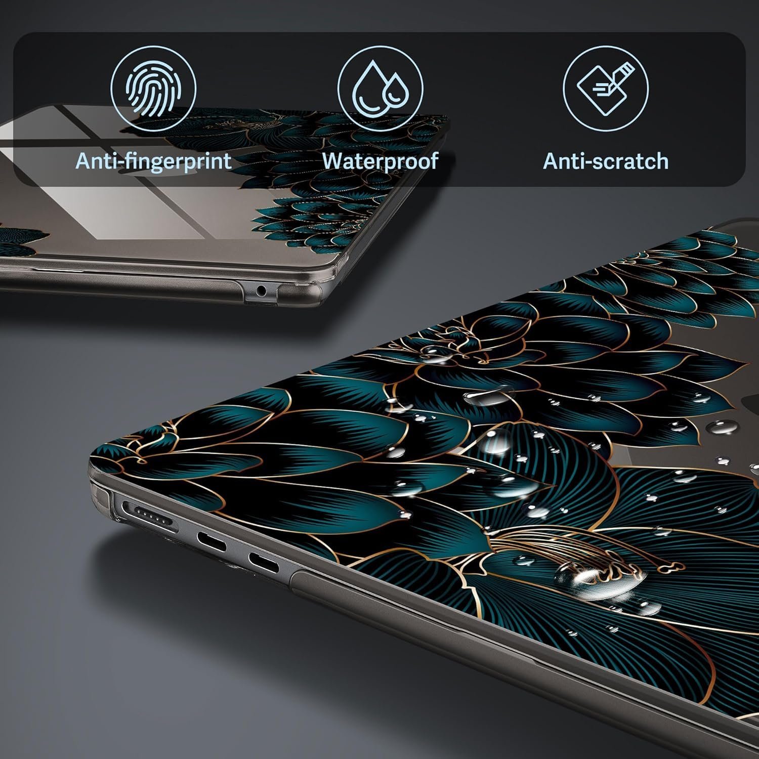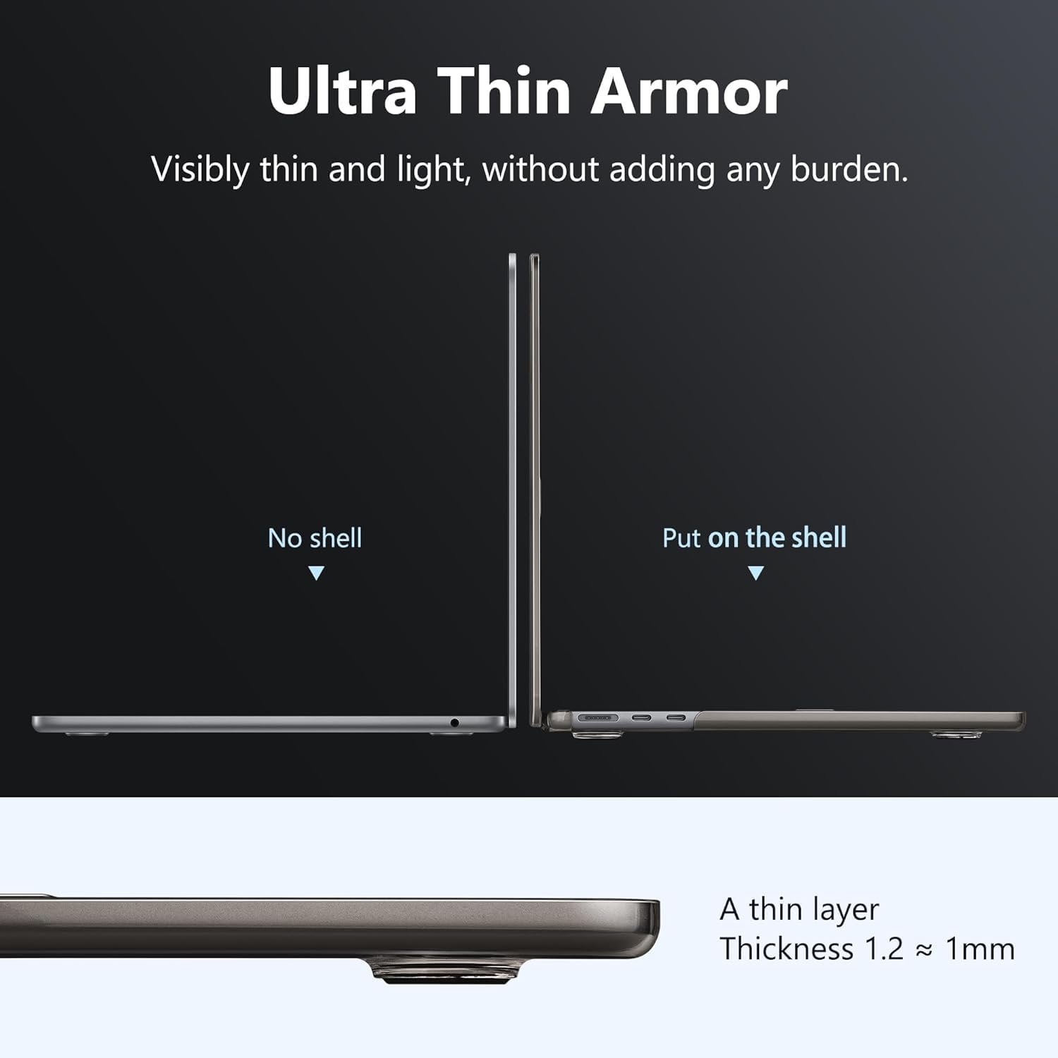 The surface of the protective case is coated with a nano oleophobic layer, making it resistant to sweat, fingerprints, and oil. It has good light transmittance and hydrophobic and oleophobic properties.The high-precision micro-etching matte finish matches your MacBook and original Midnight perfectly, making it almost imperceptible, while retaining the original glossy and minimalist design.