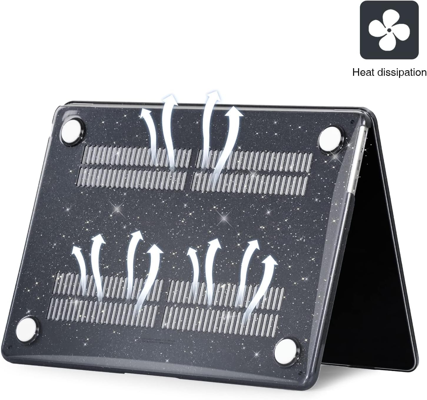 EooCoo Compatible for MacBook Air 13 inch Case M4 M3 M2 2025 2024 2022 Release, A3240 A3113 A2681 with Touch ID, Transparent Plastic Hard Shell Cover Mac 13.6 – Glitter Crystal Midnight