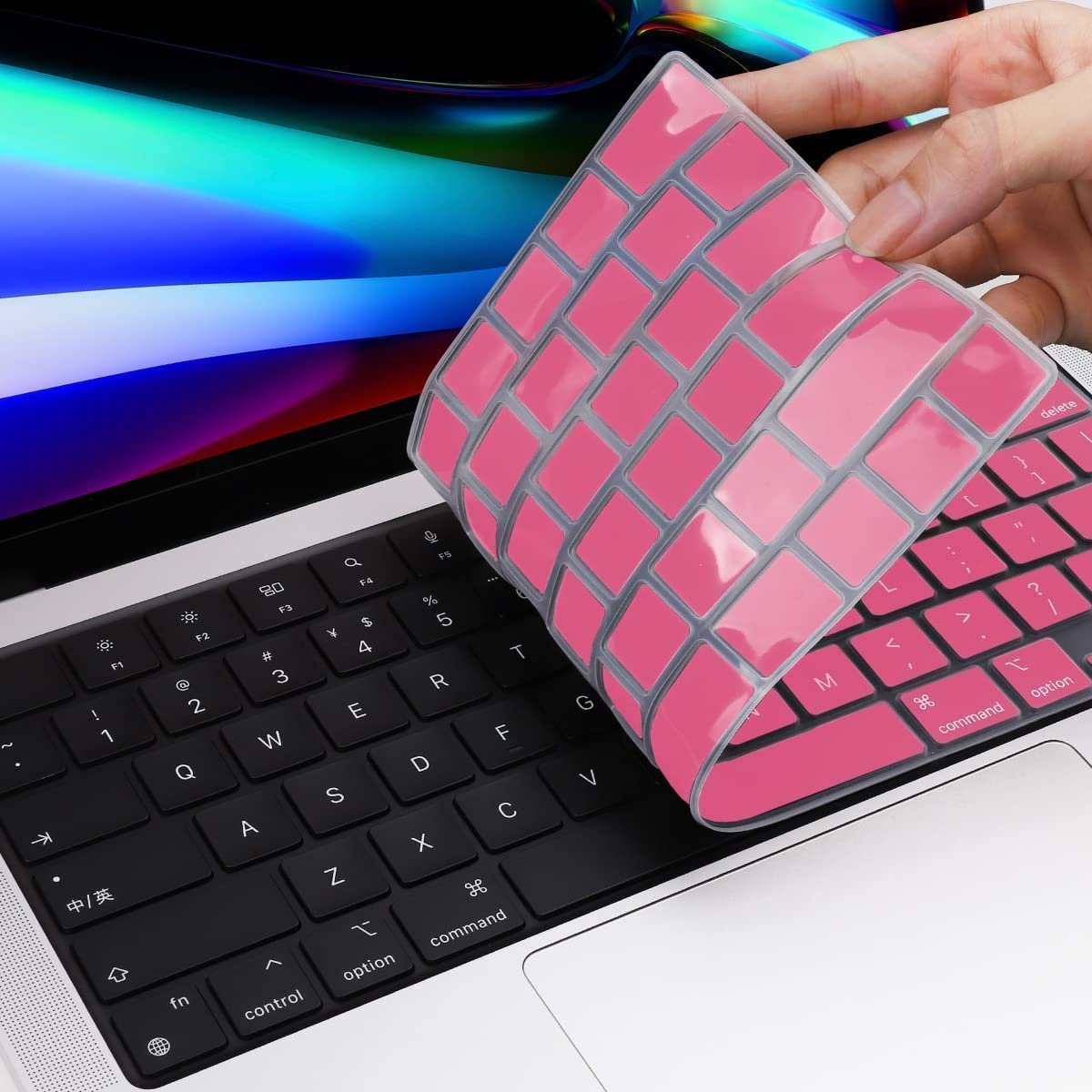 OJOS Keyboard Cover Skin Compatible with 2025-2021 MacBook Pro 14 16 inch M4 M3 M2 M1 Pro/Max, MacBook Air 15″ 13.6″ M4 M3 M2 Chip A3241 A3114 A2941 A3240 A3113 A2681 Keyboard Protector, Pink