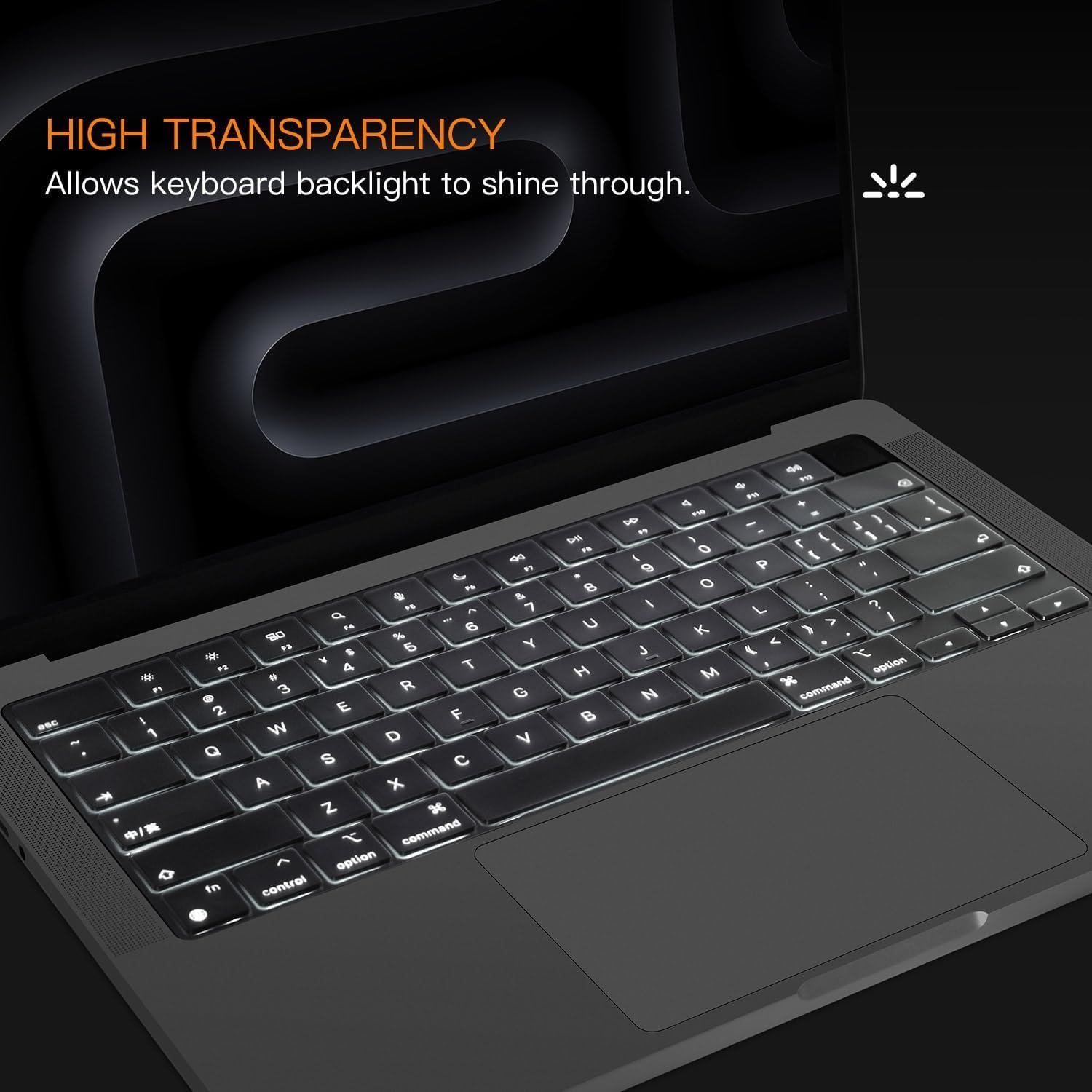 Fit precisely compatible with MacBook Air 13.6 inch M3 M2 chip 2024-2022 (model: A3113/A2681) & compatible with MacBook Air 15 inch M3 M2 chip 2024-2023 (model:A3114/A3113) & compatible with MacBook Pro 14 inch M4 M3 M2 M1 Pro/Max chip 2024-2021 (model: A3185/A3401/A3112/A2992/A2918/A2779/A2442) & compatible with MacBook Pro 16 inch M4 M3 M2 M1 Pro/Max chip 2024-2021 (model: A3403/A3186/A2991/A2780/A2485). US Keyboard Layout Only. Please check your laptop model number “Axxxx” on the bottom of the laptop.