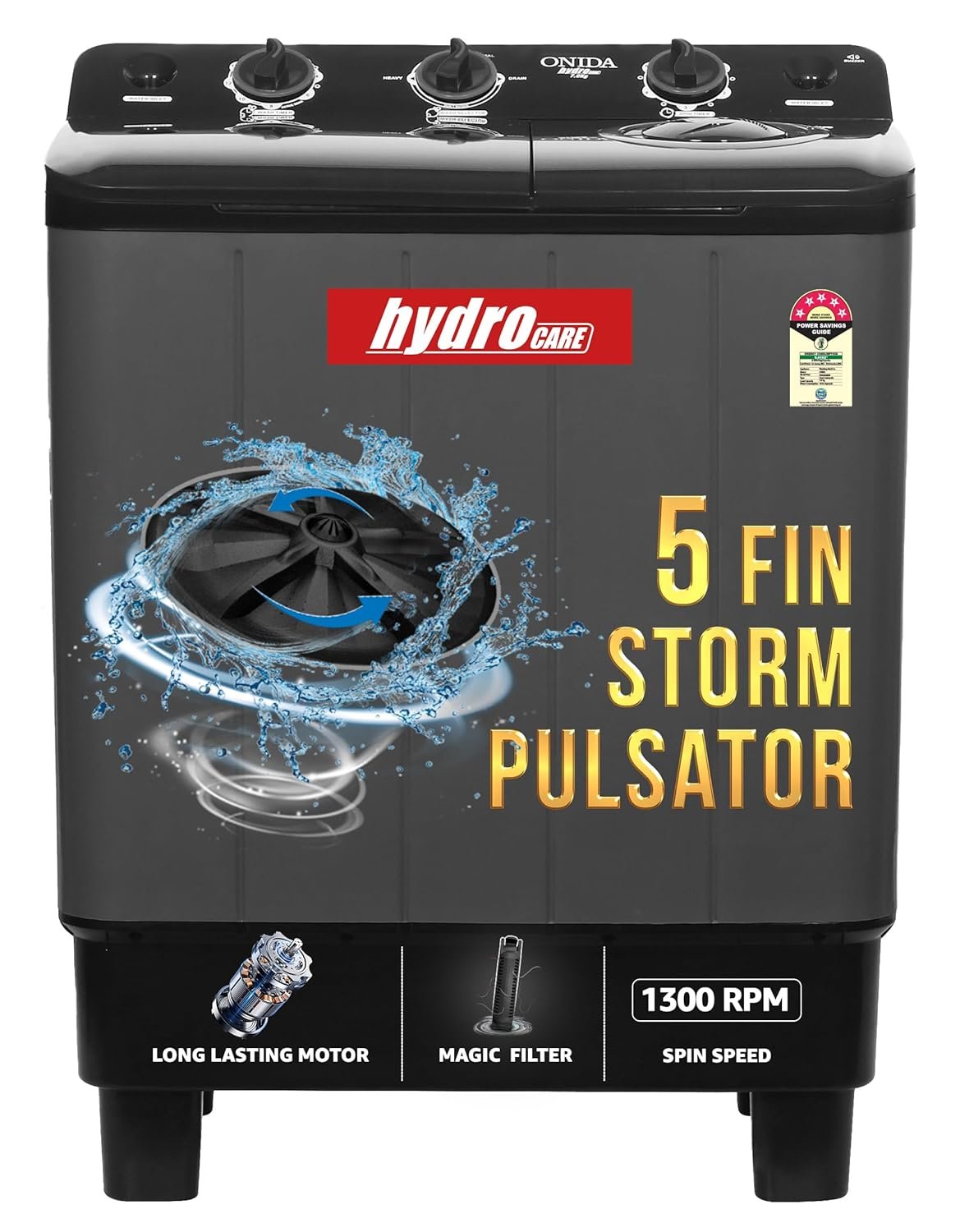 ONIDA 7 kg 5 Star Semi Automatic Top Loading Washing Machine (S70GR,Grey, 5 Spin Storm Pulsator, Powerful Wash Motor, Magic Filter)