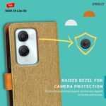 【PREMIUM DESIGN】: Made with high-quality denim fabric & eco-friendly vegan leather, this iQOO Z9 Lite 5G back cover case offers a unique two-tone professional look. Perfect blend of style & durability for your smartphone protection