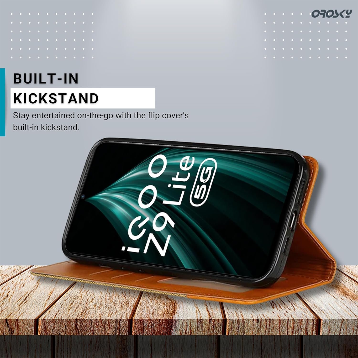 【PRACTICAL STORAGE】: The iQOO Z9 Lite 5G wallet case includes multiple card slots & pockets to store your credit cards, debit cards, ID & cash. Ideal leather flip cover for business professionals & daily commuters.