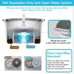 【𝐒𝐞𝐥𝐟 𝐒𝐞𝐩𝐚𝐫𝐚𝐭𝐢𝐨𝐧 𝐒𝐞𝐰𝐚𝐠𝐞 & 𝐂𝐥𝐞𝐚𝐧 𝐖𝐚𝐭𝐞𝐫 𝐒𝐲𝐬𝐭𝐞𝐦】: Oumffy spin mop and bucket set can separate the dirty water from the clean water making sure dirt and particulates don’t get reintroduced to the mop. And a spin cycle in the basket for wringing water out of the mop head to desired dampness. Your hands stay clean and dry with this self-washing and self-wringing floor cleaning system.