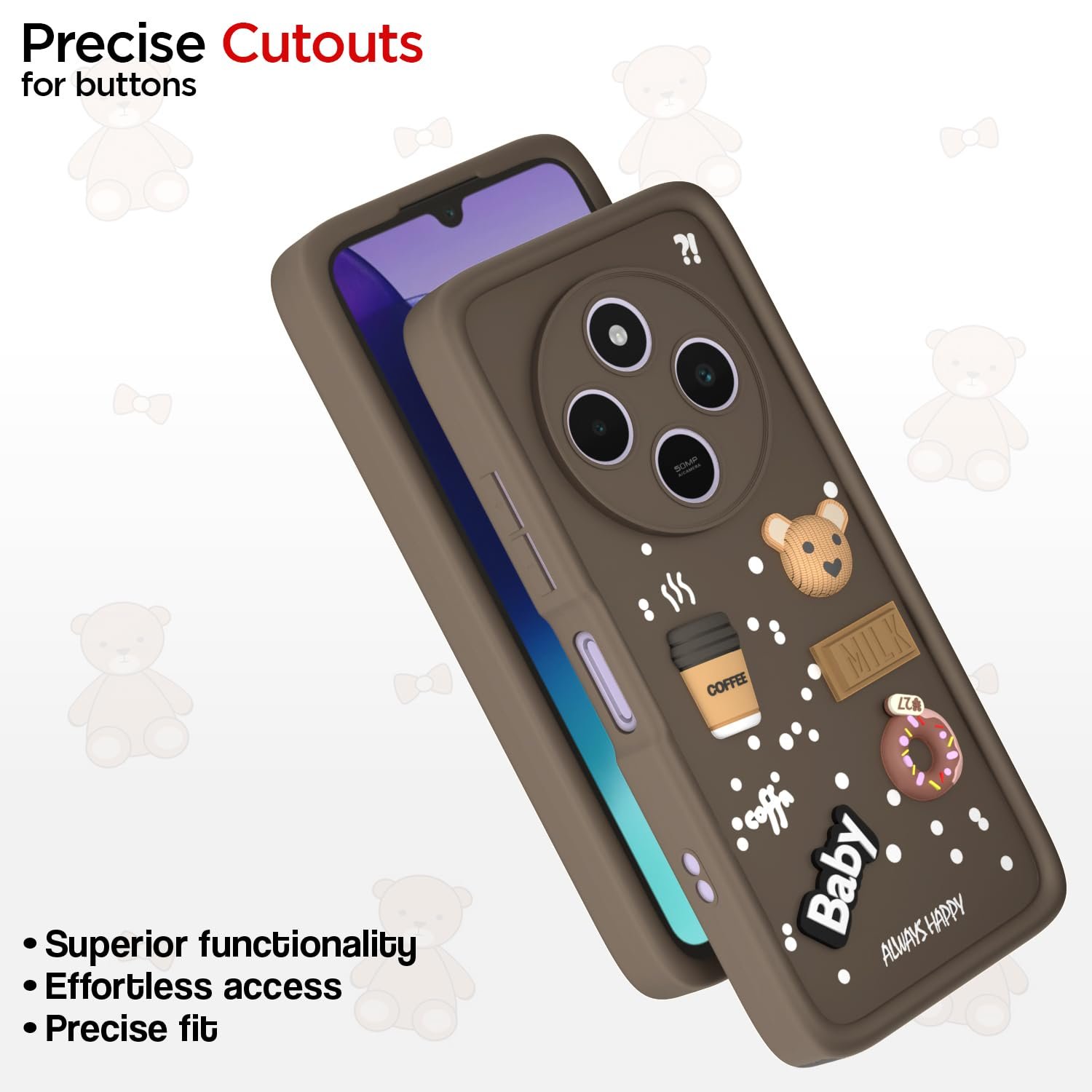 Outlouders Back Cover for Redmi A4 5G / Redmi 14C 5G / Poco C75 5G | 3D Cartoon Cute Fun Bear | Silicone Full Body Protection Bumper Case (Brown)