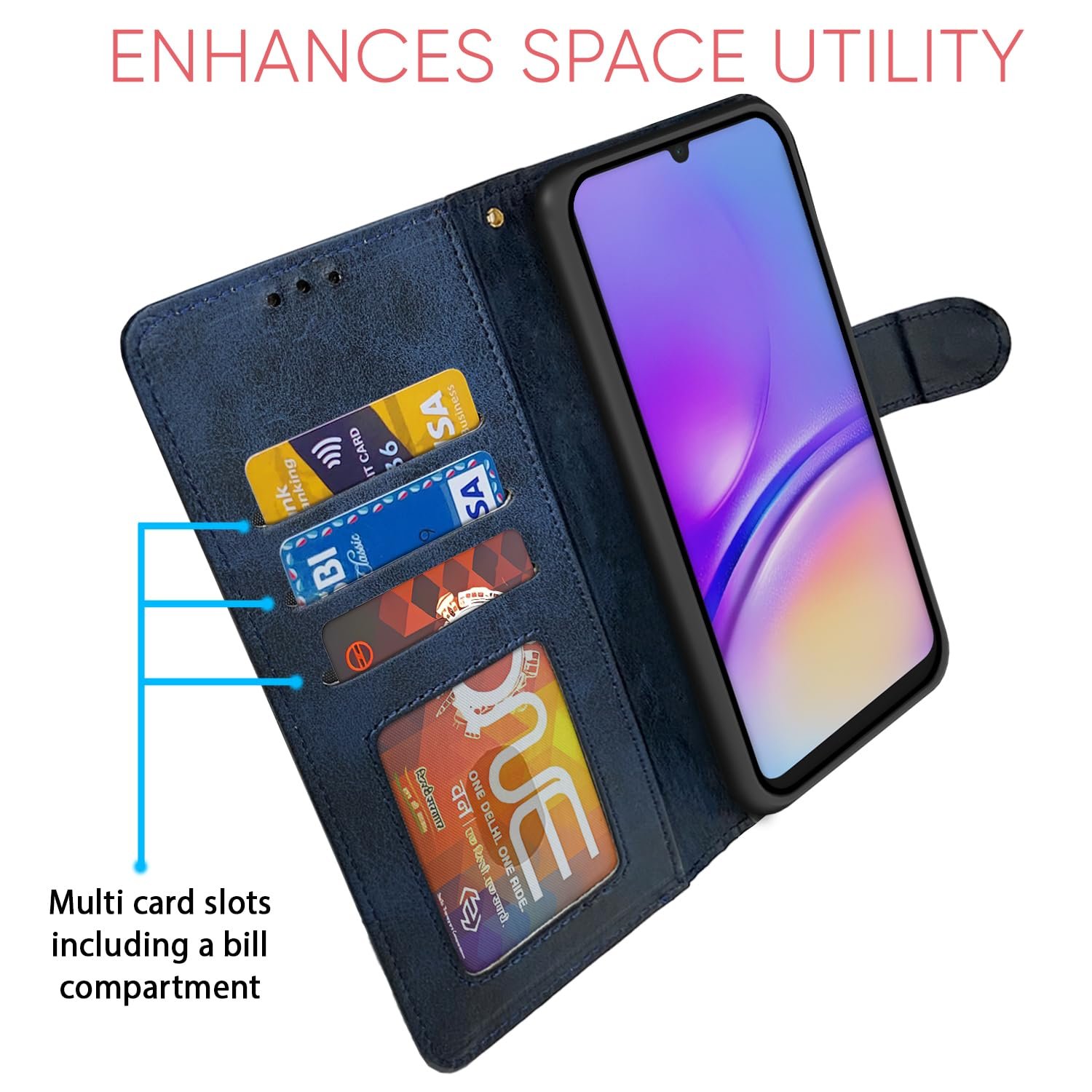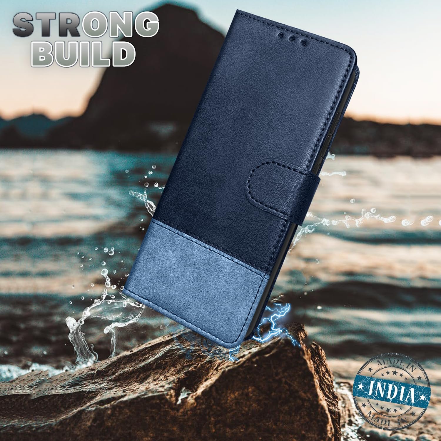 Outlouders Flip Cover for Samsung Galaxy A05 / M05 / F05 | Dual-Tone PU Leather Finish | Wallet Style & Stand | Magnetic Flip Case (Navy & Light Blue)