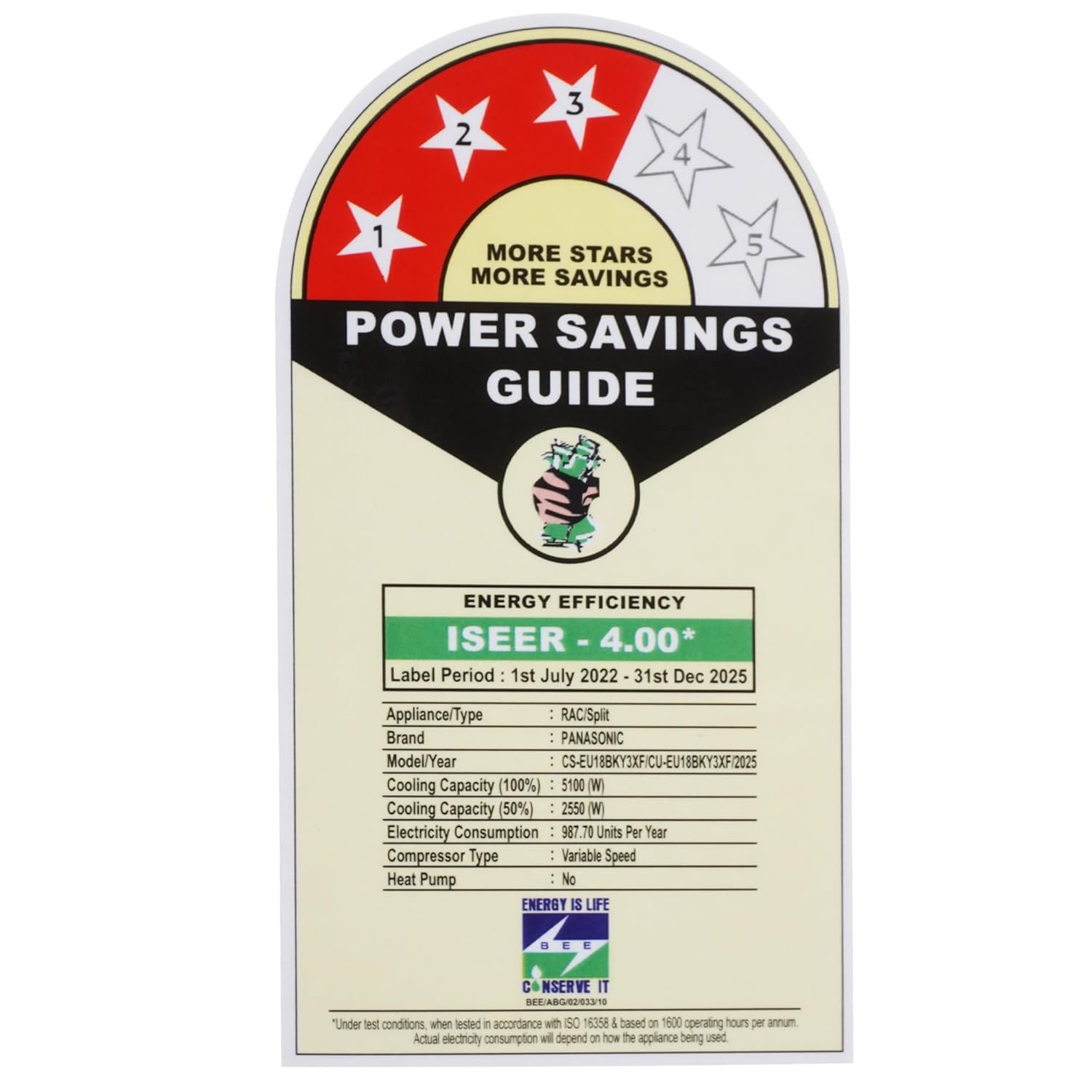 Energy Efficiency: 3-star BEE rating for moderate power consumption.