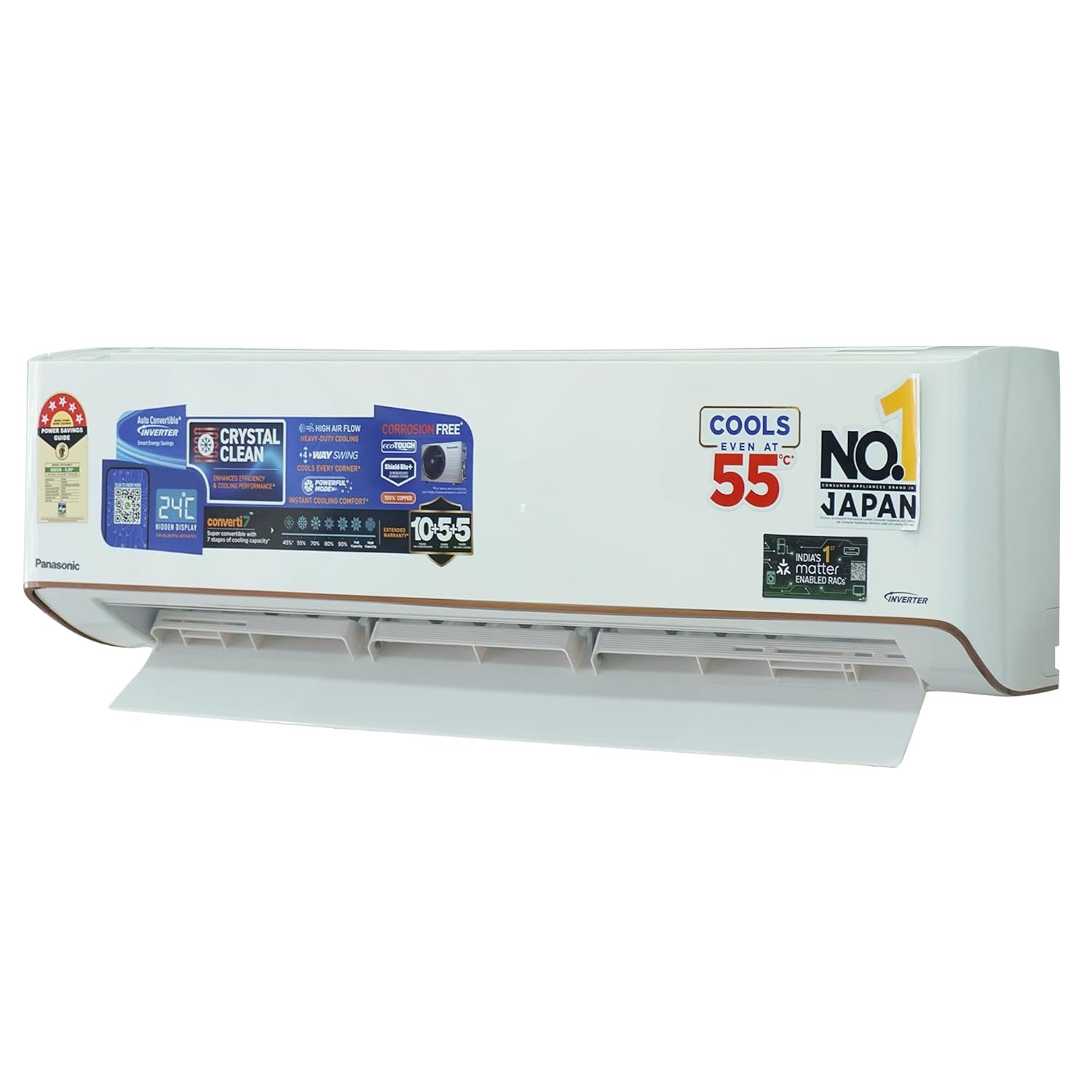 Panasonic EU 7-in-1 Convertible 1.5 Ton 5 Star Inverter Split AC with Temperature Sensors, 4-Way Swing, Copper Condenser (2025 Model, CS/CU-EU18BKY5X), Works at 54°C, Crystal Clear Indoor & Outdoor