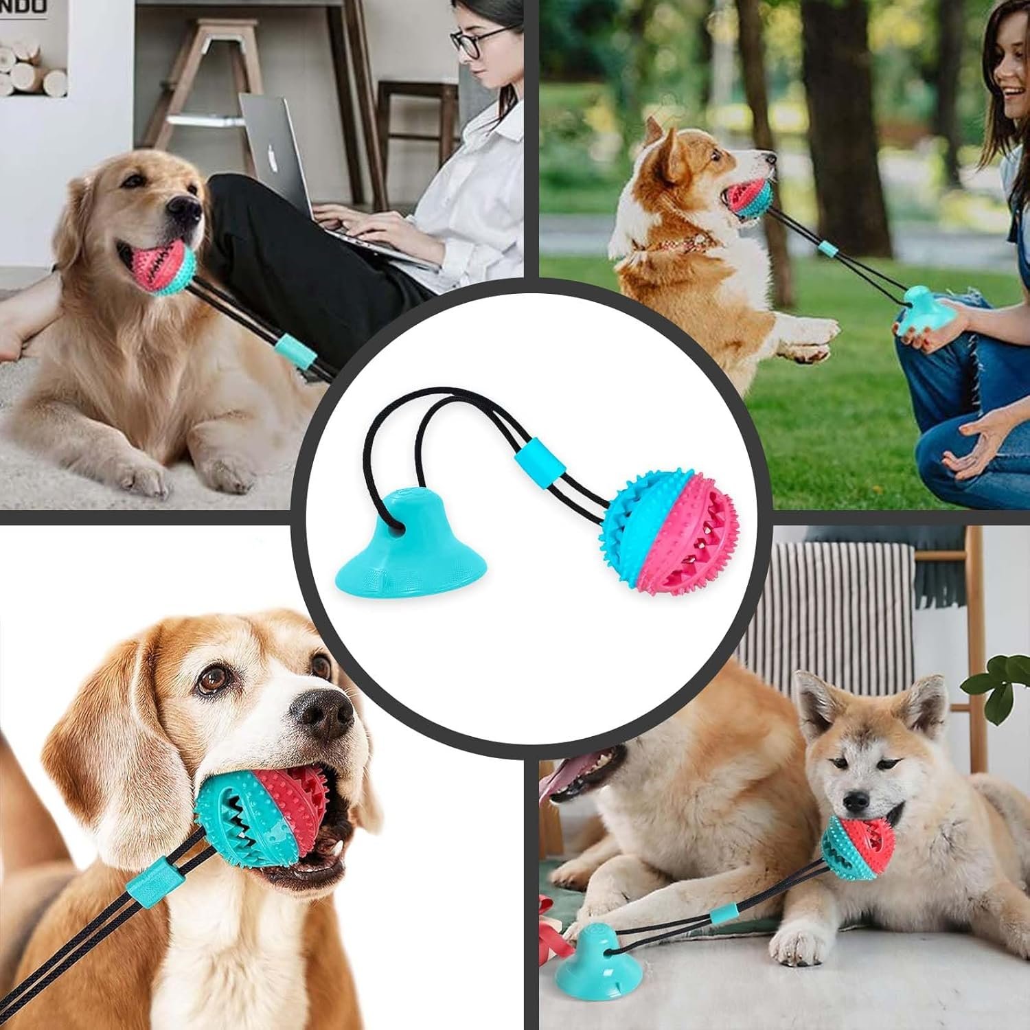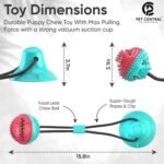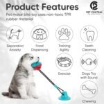 Pet Central Interactive Toy | Suction Cup Chew Toy for Aggressive Chewers | Treat Dispensing Squeaky Dog Toy for Stimulation and Self-Playing | Tug of War Rope With Teeth Cleaning Ball