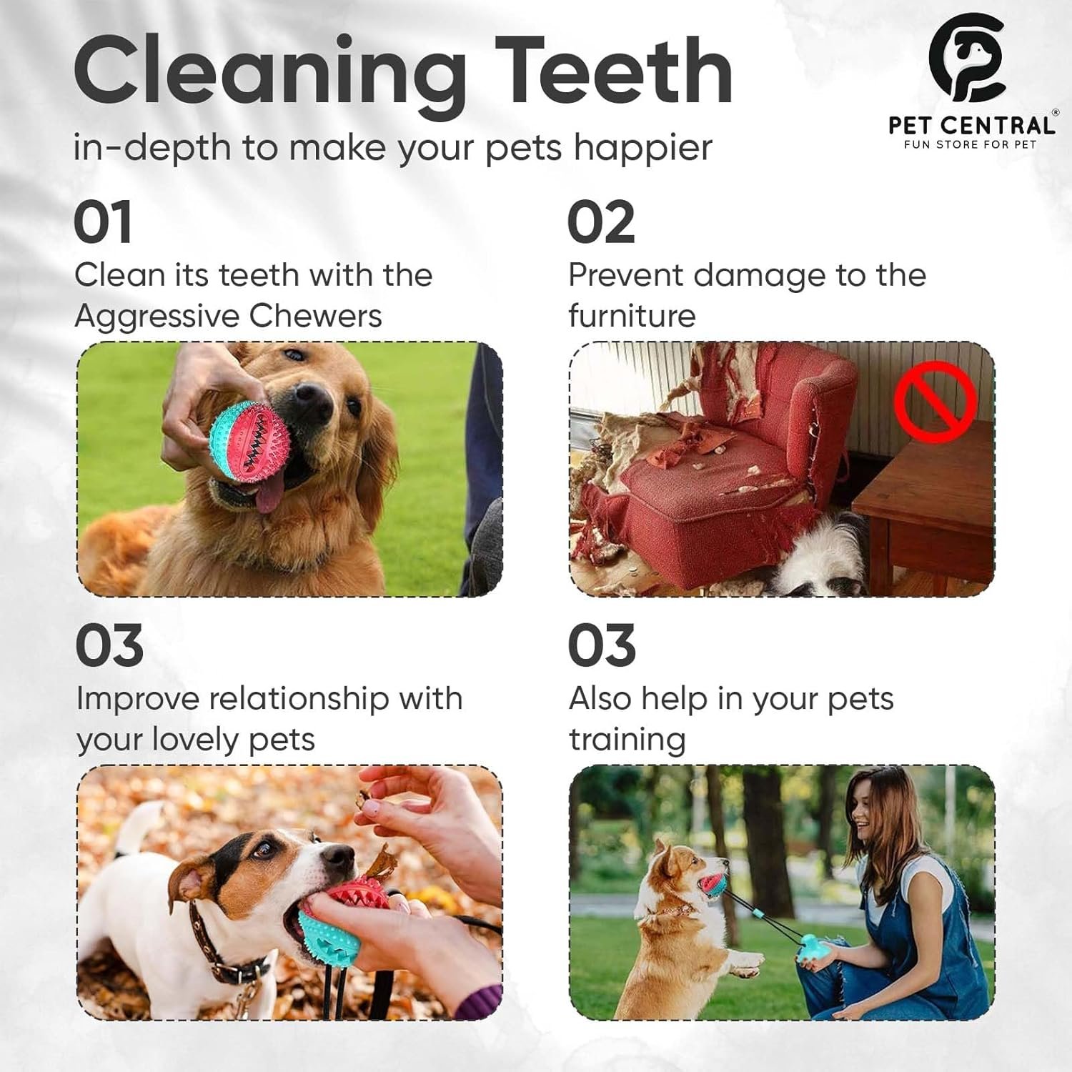 Teeth Cleaning Ball: The rubber ball for dog features a textured design for molar biting that can help contribute to excellent oral care, as it may help remove plaque, tartar, or food, freshen up the breath and support strong teeth.