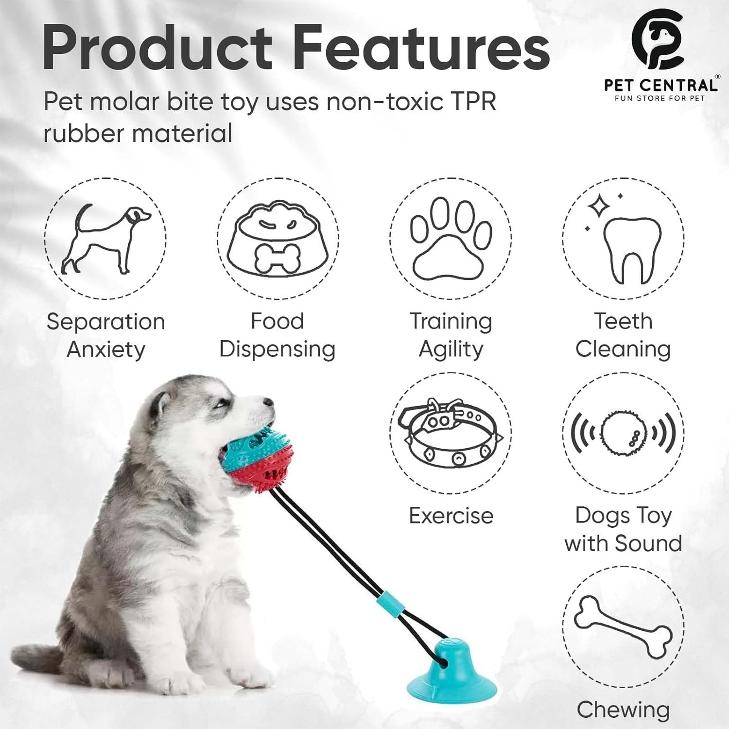 Be the first to review “Pet Central Interactive Toy | Suction Cup Chew Toy for Aggressive Chewers | Treat Dispensing Squeaky Dog Toy for Stimulation and Self-Playing | Tug of War Rope With Teeth Cleaning Ball”
