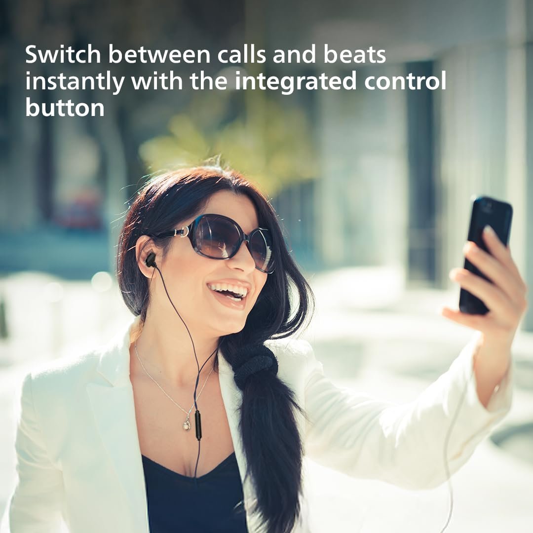 PHILIPS Audio TAE1159BK/00 in-Ear Wired Earphones with C-Type Jack, 10mm Drivers, Inline Mic, Powerful Bass and Clear Sound, Tangle Free 1.2m Cable and 3 x Inter Changeable Ear Tips (Black)