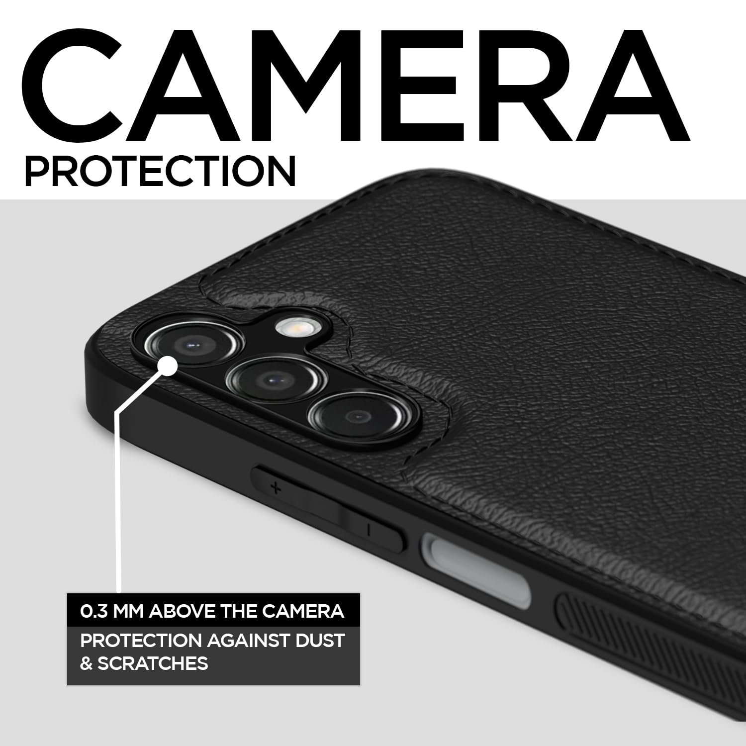 Pikkme Back Cover| Flexible Pu Leather | Full Camera Protection | Raised Edges | Super Soft-Touch | Bumper Case for Samsung Galaxy M15 / F15 / M15 5G Prime Edition (Black)