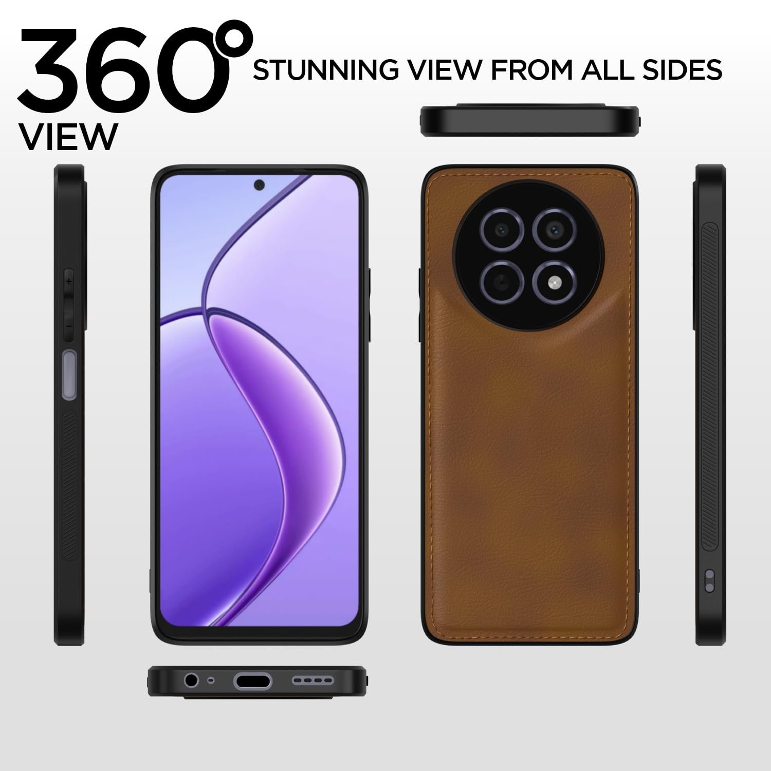 Pikkme Back Cover | Flexible Pu Leather | Full Camera Protection | Raised Edges | Super Soft-Touch | Bumper for Realme Narzo 70x 5G / N65 / Realme 13/12/12X 5G/C65 (Brown)