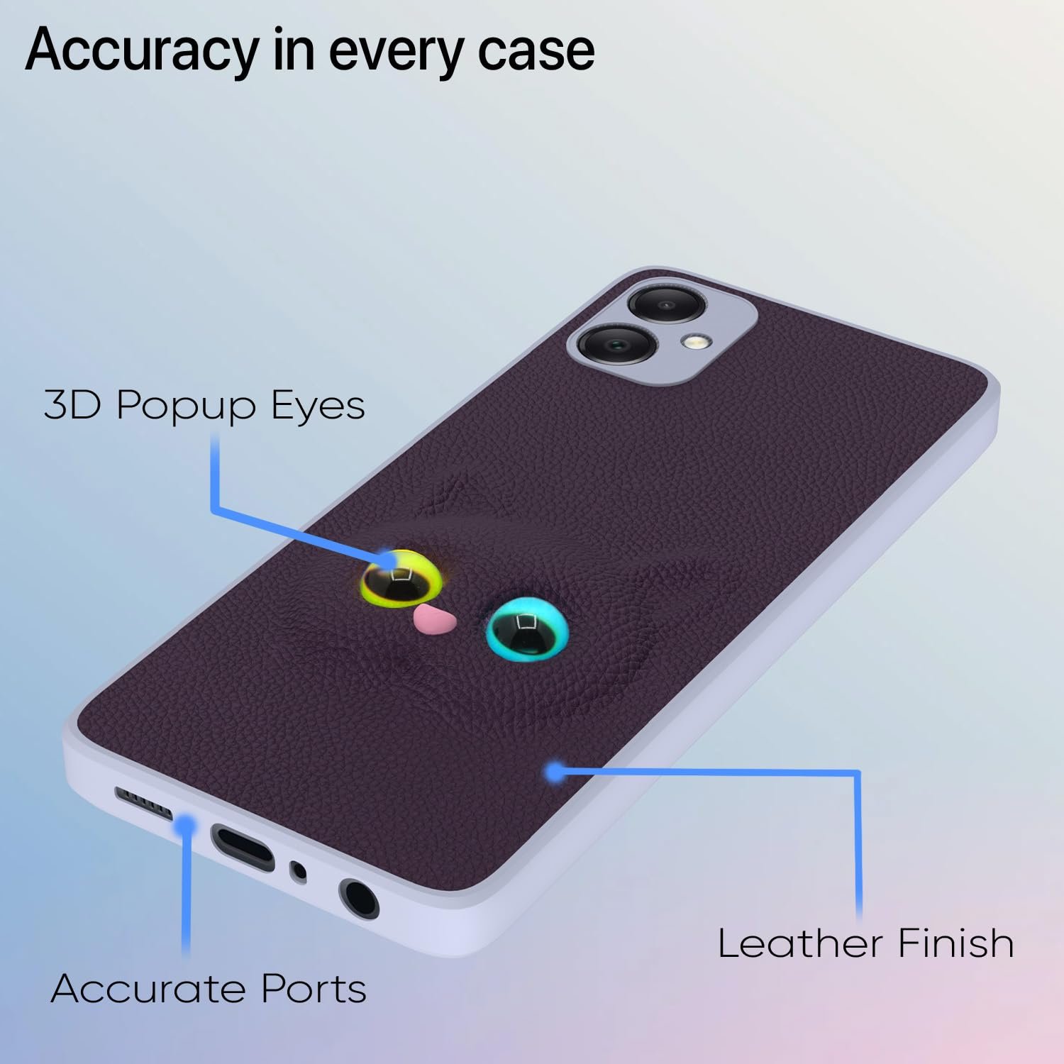 Pikkme Back Cover for Girls | Cute Cat Leather Finish | Soft TPU | Case for Samsung Galaxy A05 / M05 / F05 (Purple)