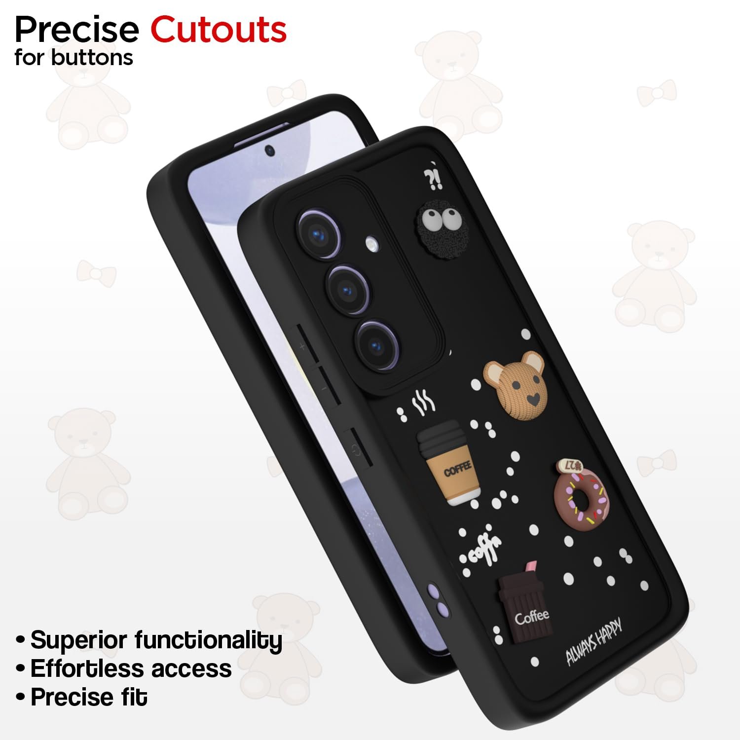 Pikkme Back Cover for Samsung Galaxy S24 5G | Cute Fun Cartoon 3D Bear Silicone Full Body Protection Bumper Cover (Black)