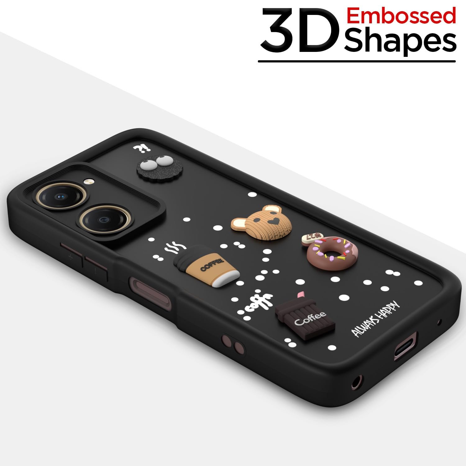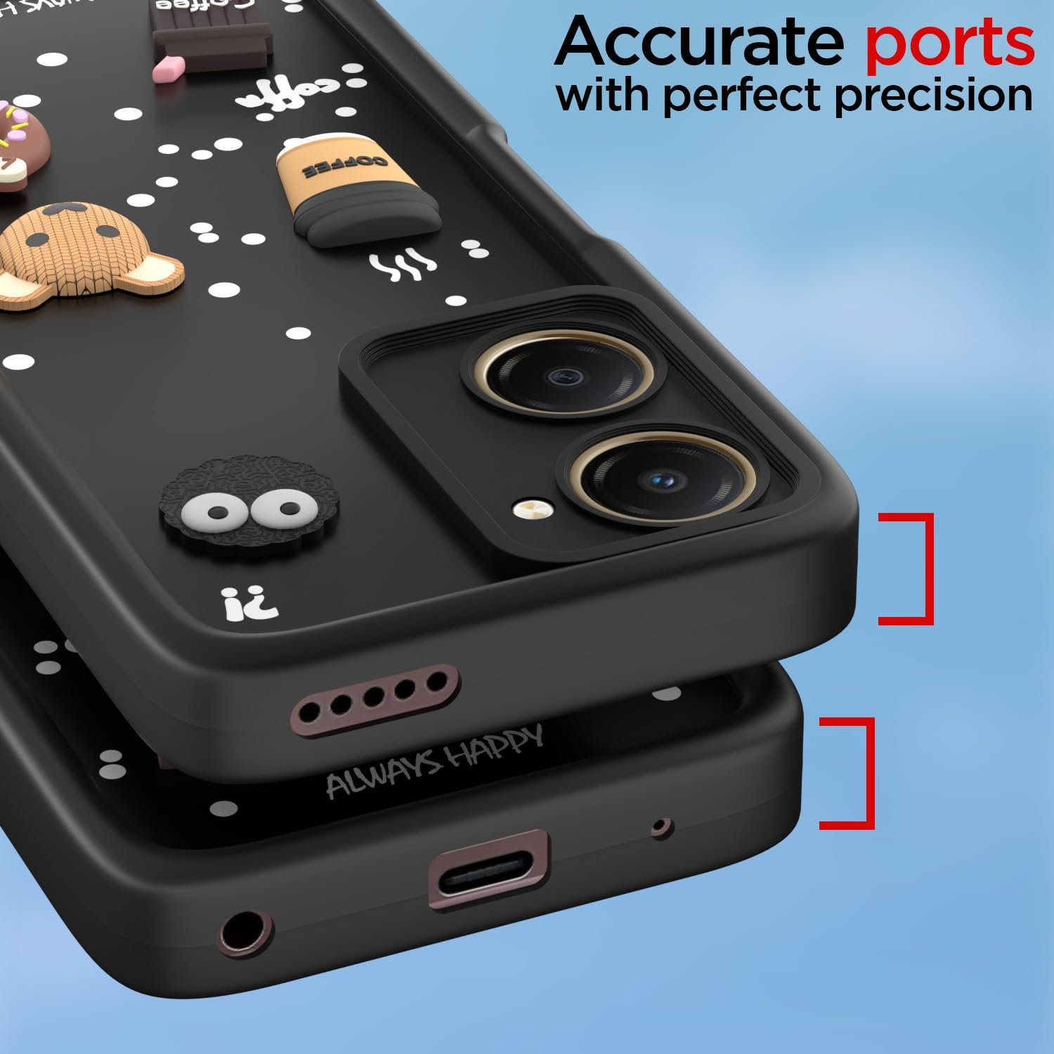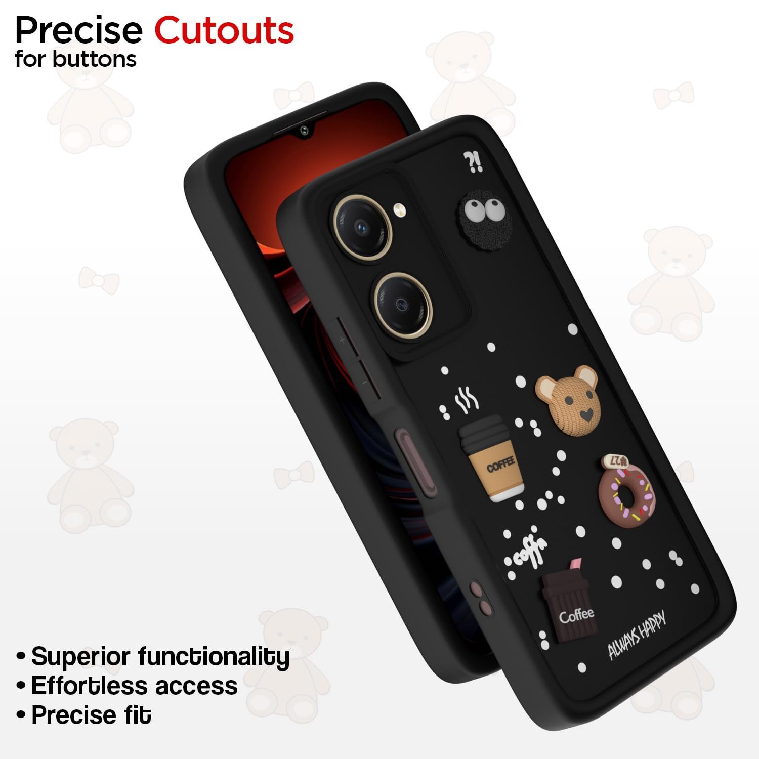 Pikkme Bumper Case for iQOO Z9 Lite 5G / Vivo T3 Lite 5G / Vivo Y18 / Y18e / Y03 | Cute Fun Cartoon 3D Bear Silicone Full Body Protection Back Cover (Black)